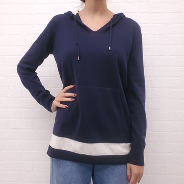 LORO PIANA NAVY CASHMERE SWEATER WITH CREAM STRIPE DETAIL - SIZE M
