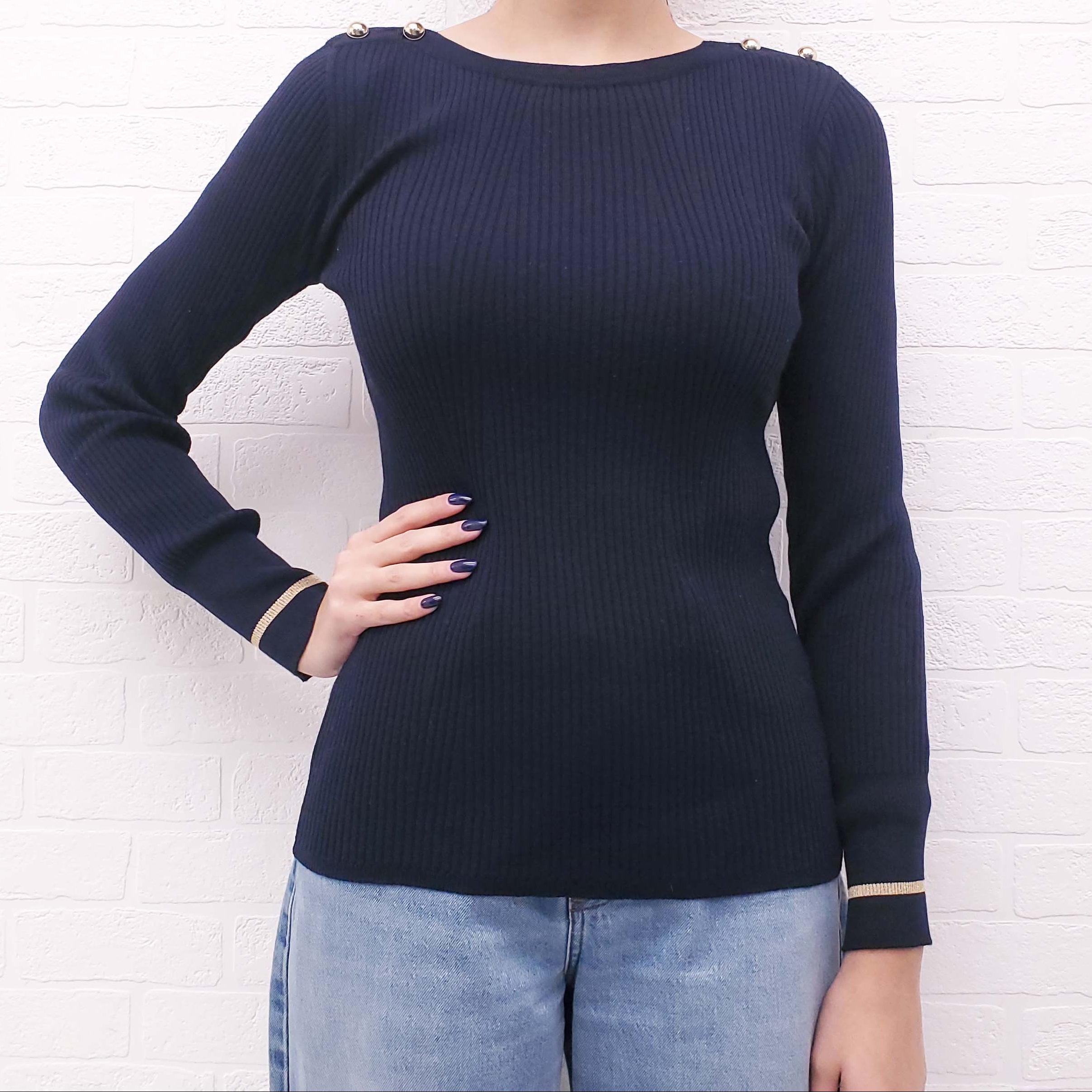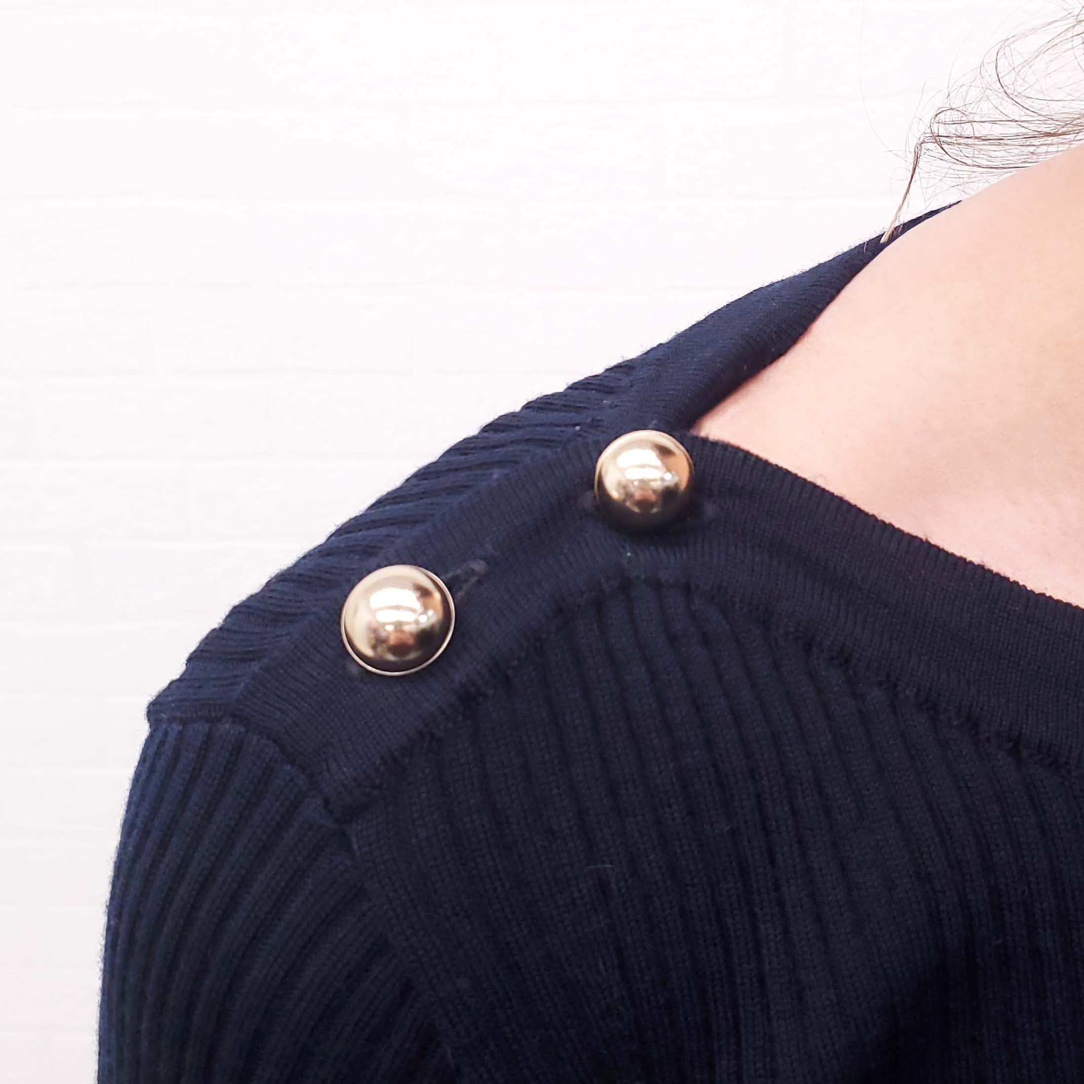 MAX MARA NAVY SWEATER WITH GOLD BUTTONS - SIZE M