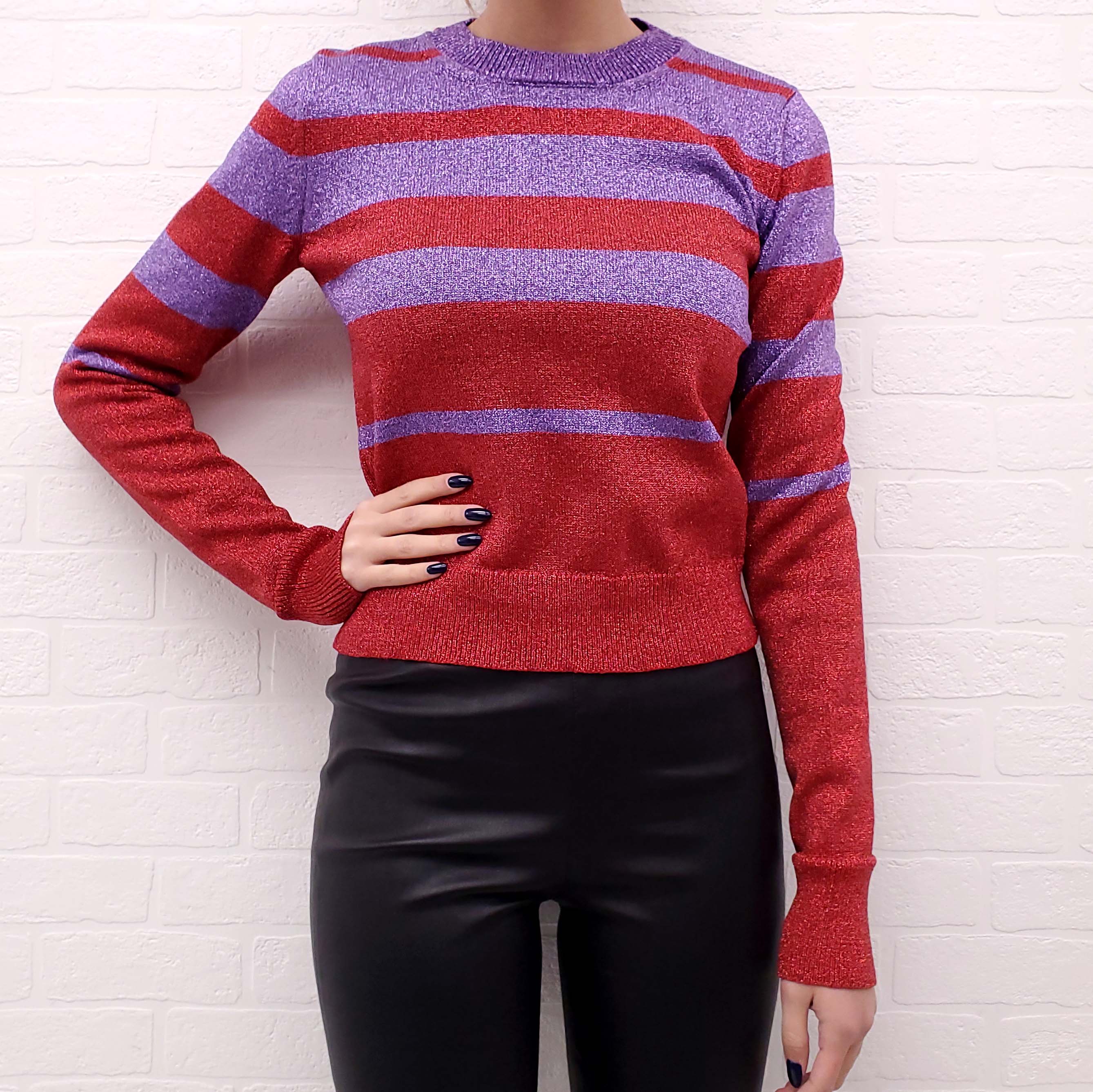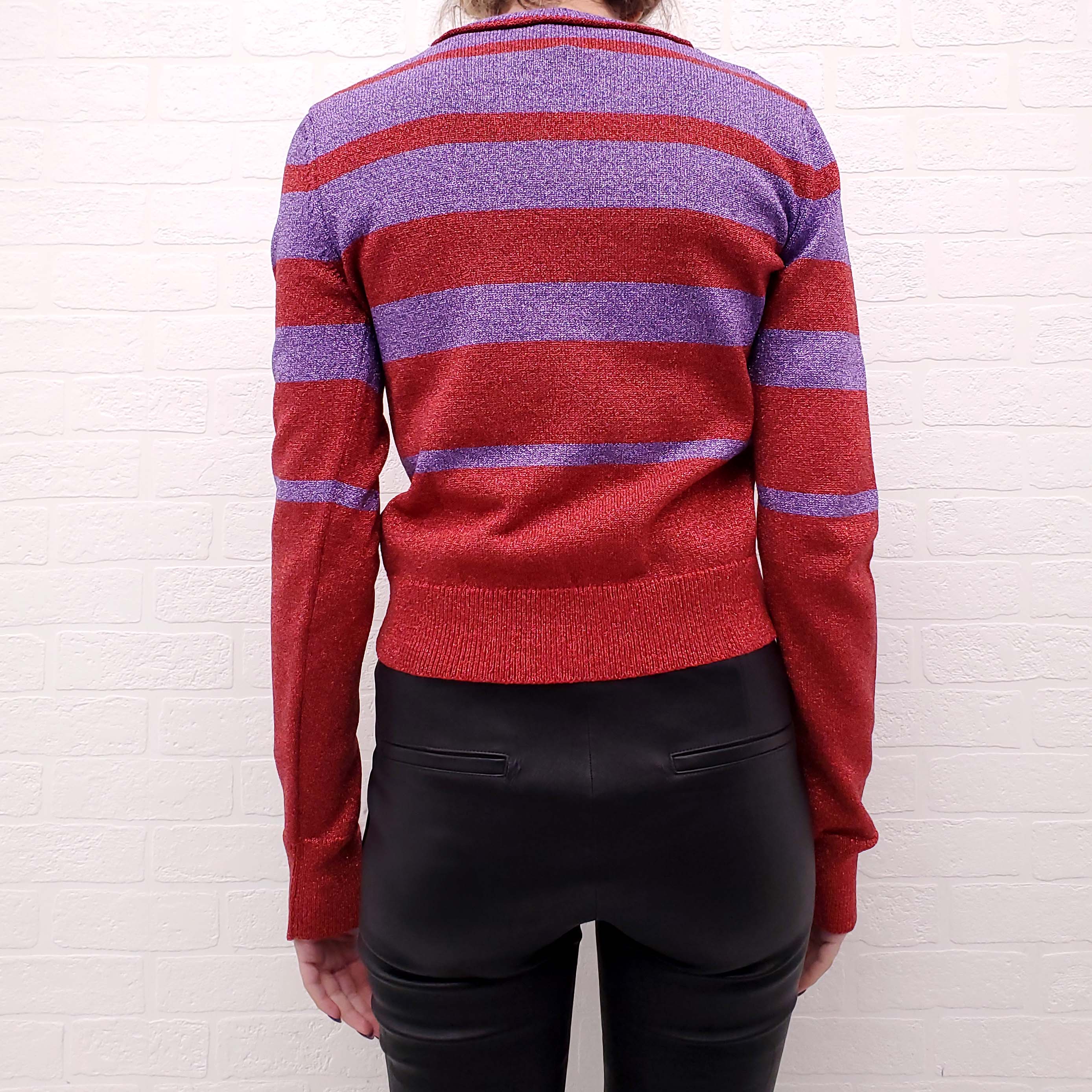 PACO RABANNE METALLIC PURPLE AND RED STRIPED SWEATER - SIZE M