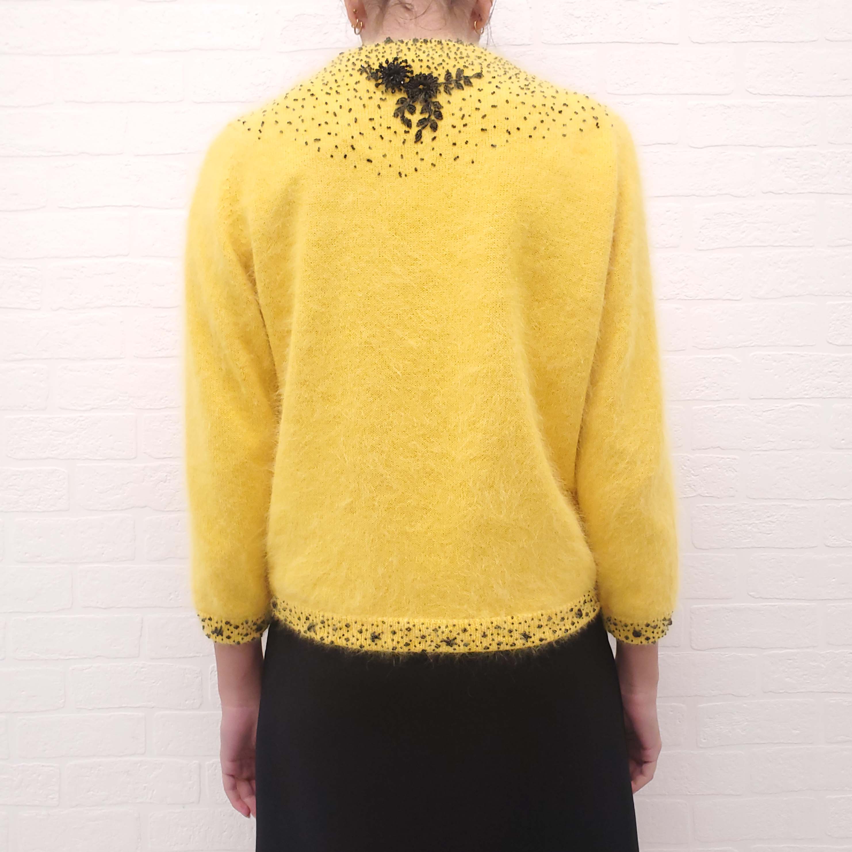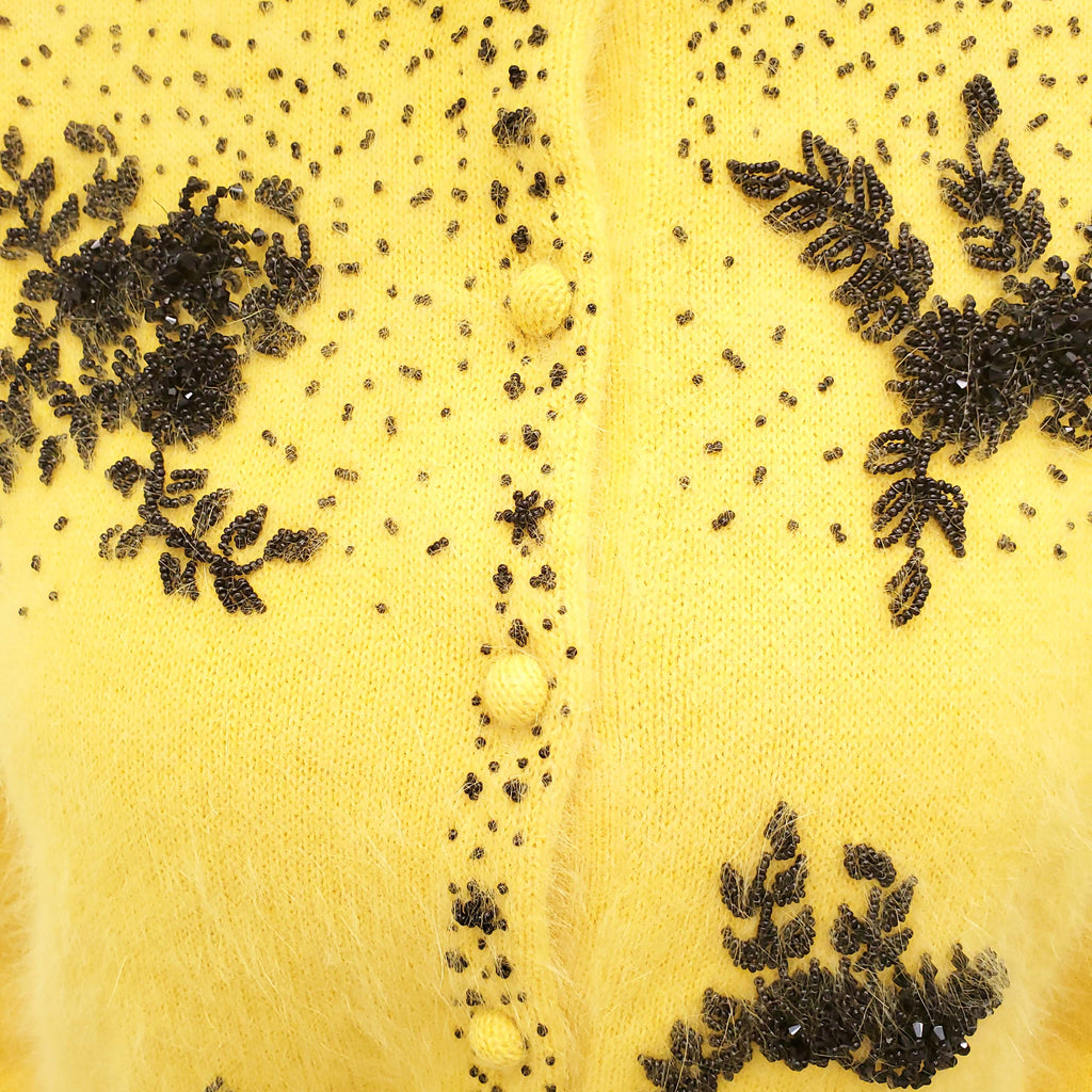 PRADA YELLOW MOHAIR CARDIGAN WITH BLACK BEADING - SIZE 44