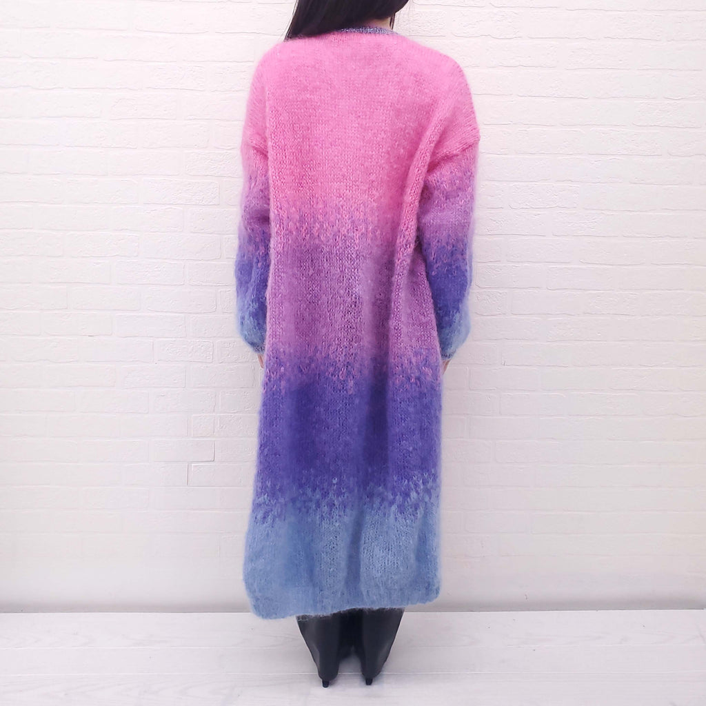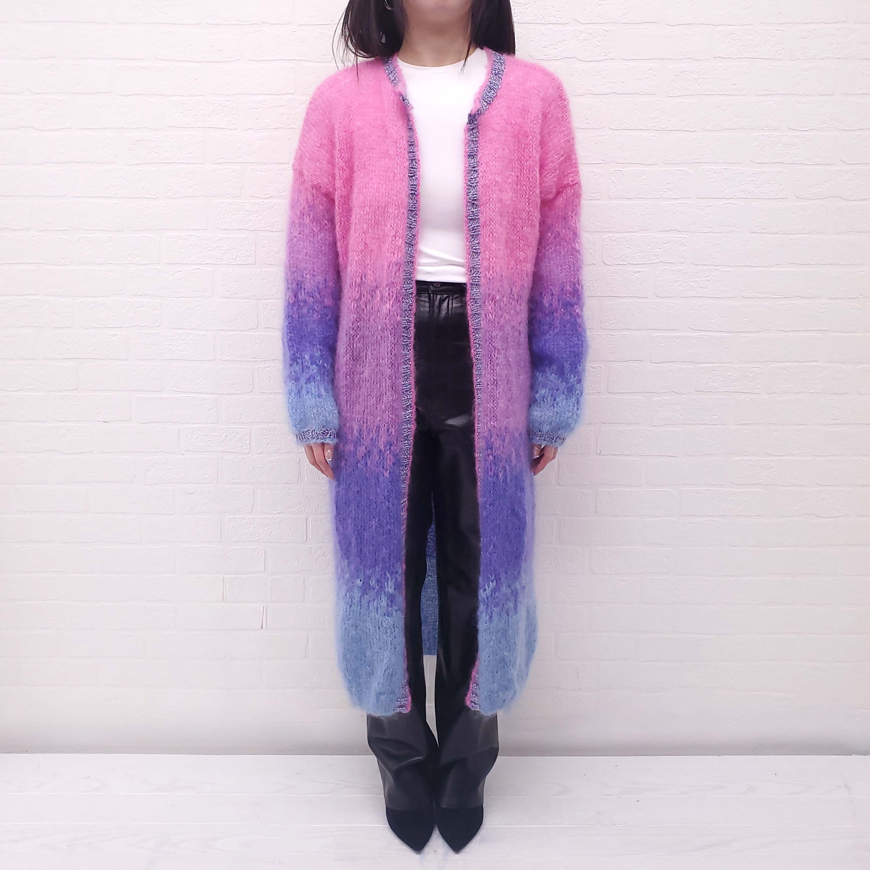ROSE CARMINE PINK AND BLUE OMBRE CARDIGAN - 0/S