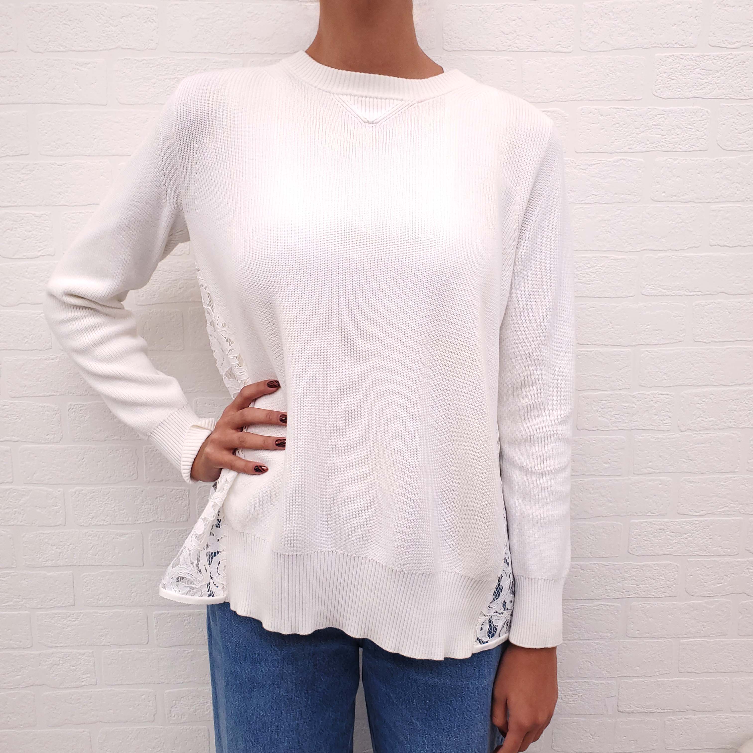 SACAI CREAM SWEATER WITH LACE BACK - SIZE 2/M