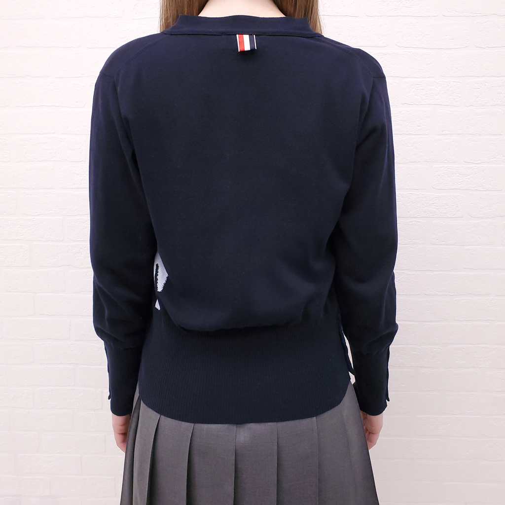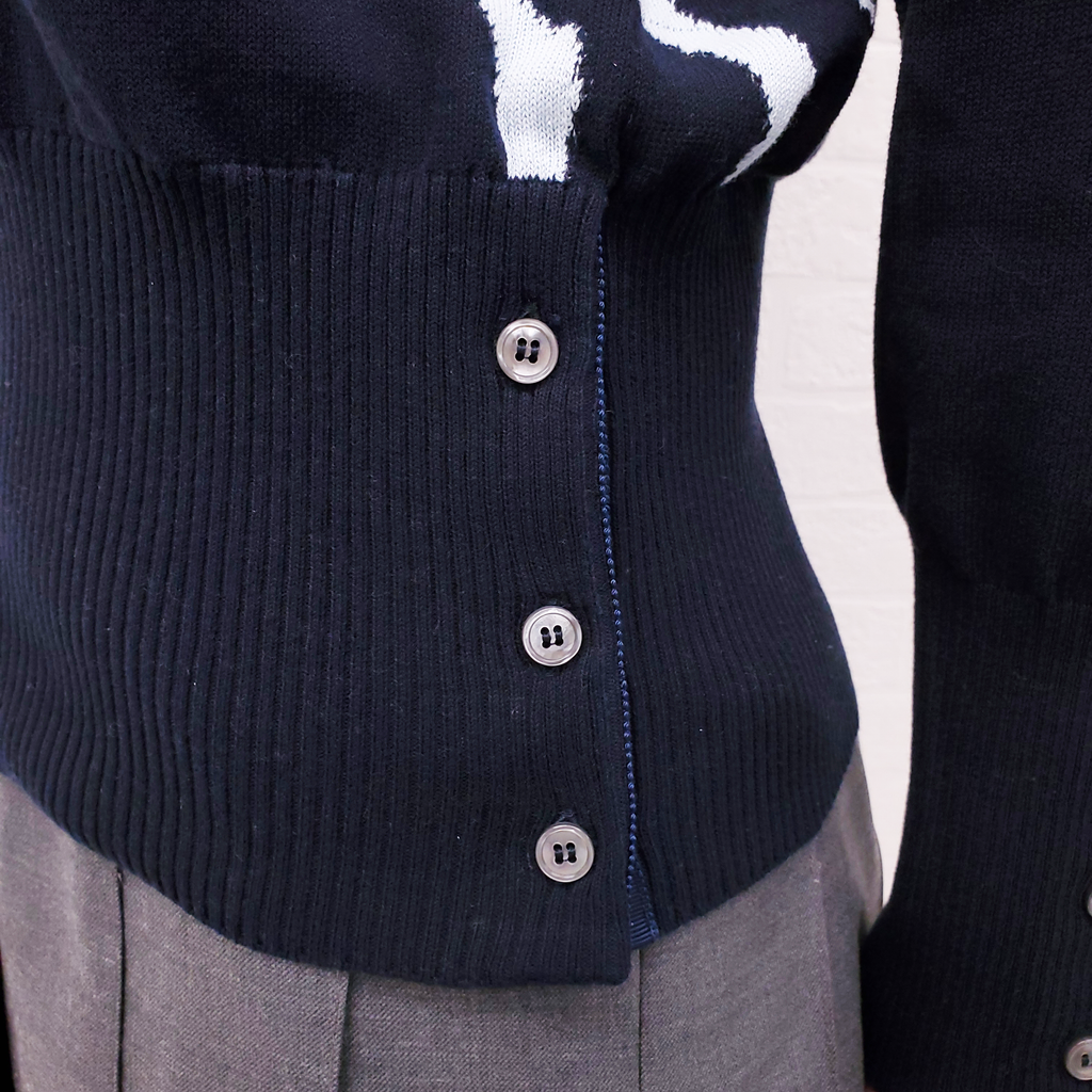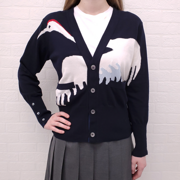THOM BROWNE NAVY CARDIGAN WITH BIRD PRINT - SIZE 40