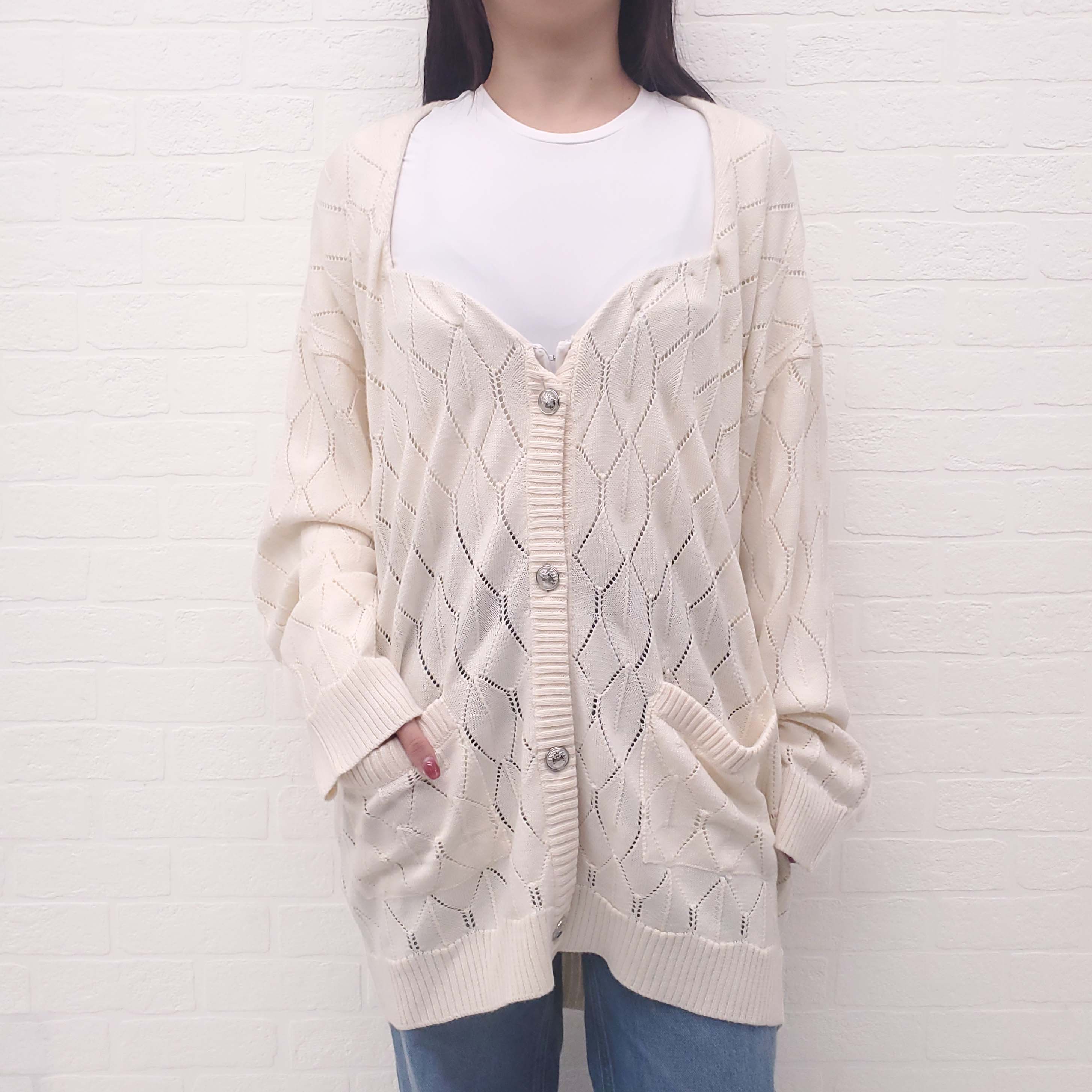 Y/PROJECT CREAM KNIT CARDIGAN WITH BUILT IN BUSTIER - SIZE M
