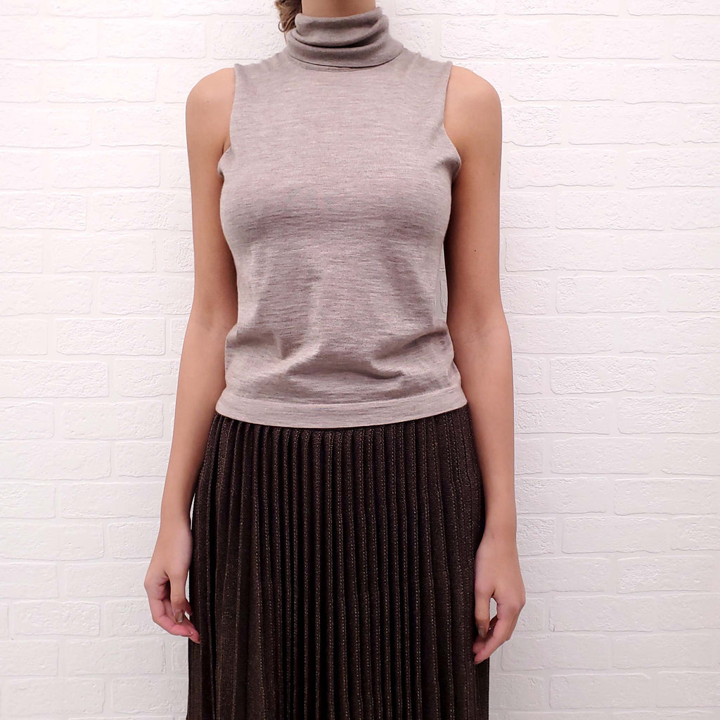 THE ROW BROWN SLEEVELESS TURTLENECK SWEATER - SIZE S