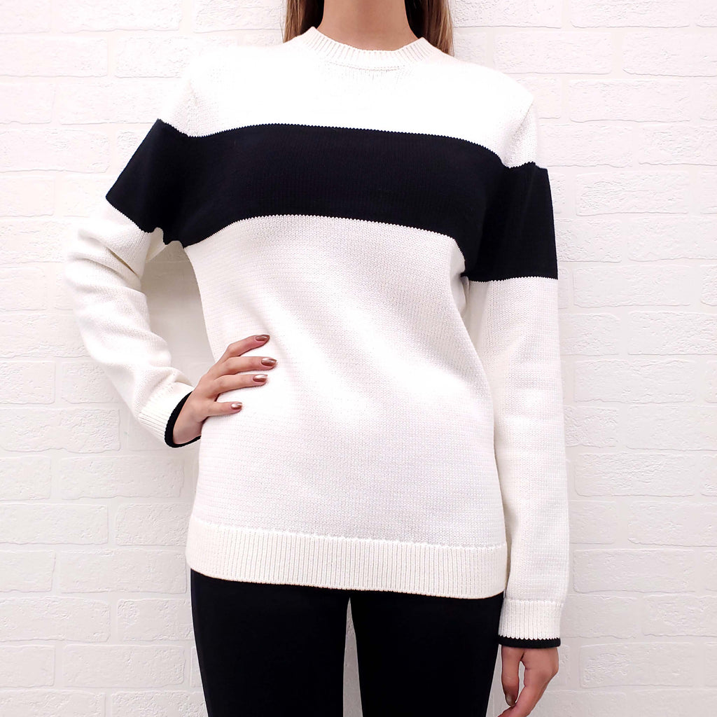 TOTEME OVERSIZED CREAM AND BLACK STRIPE SWEATER - SIZE XS