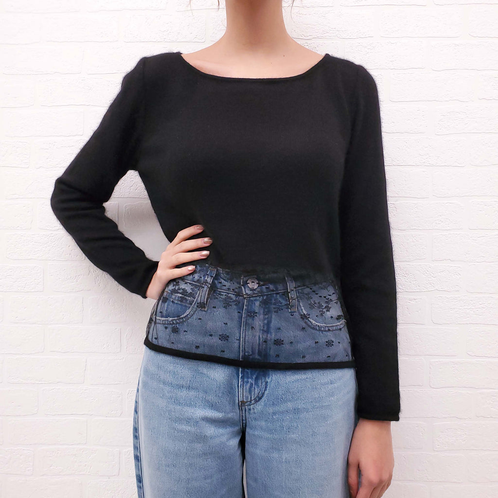 VALENTINO BLACK CASHMERE LACE SWEATER - SIZE L