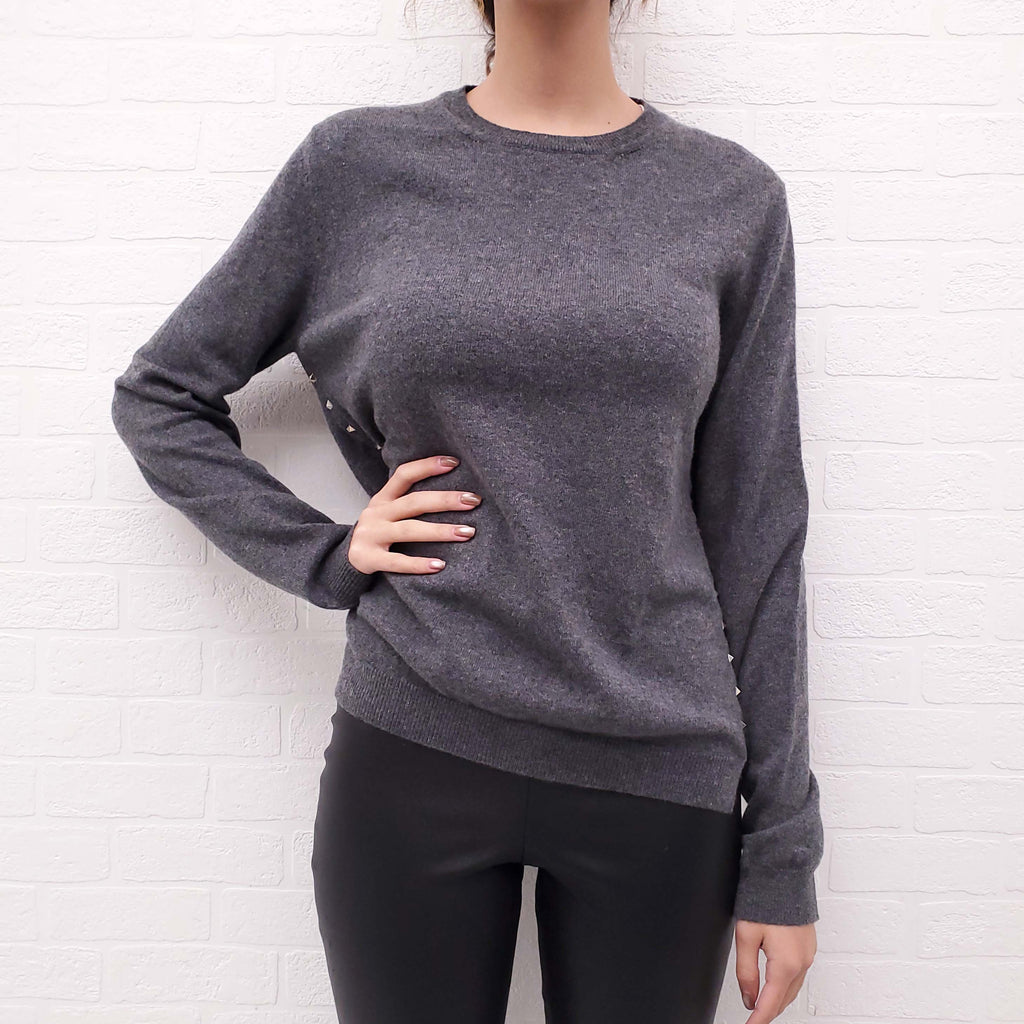 VALENTINO GREY SWEATER WITH ROCKSTUD DETAIL - SIZE M