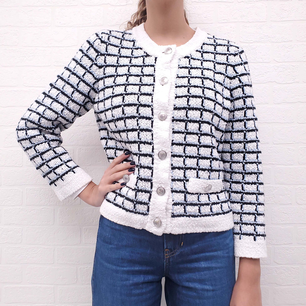 VERONICA BEARD BLUE AND WHITE KNIT SWEATER JACKET - SIZE L