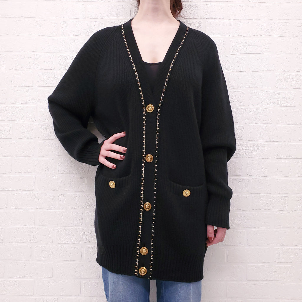 VERSACE BLACK KNIT CARDIGAN WITH GOLD MEDUSA BUTTONS - SIZE 44