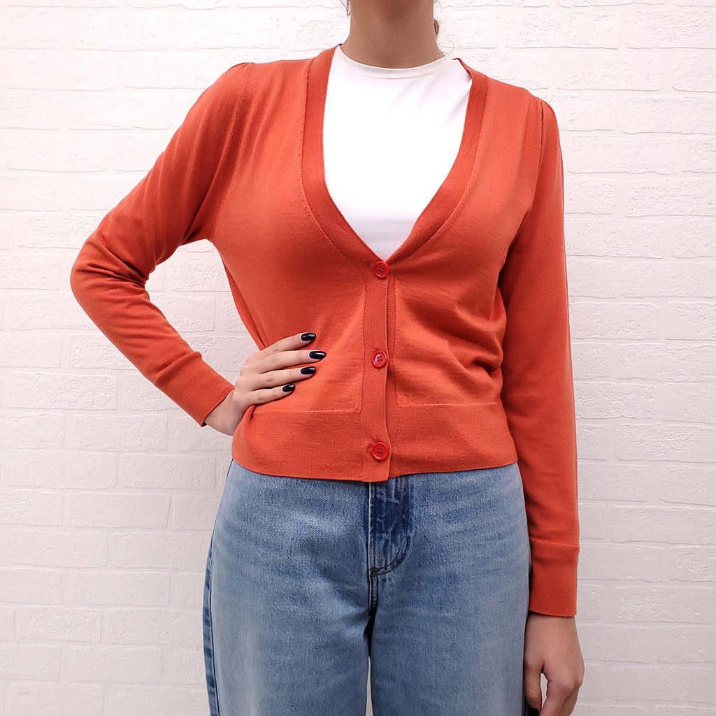 DRIES VAN NOTEN ORANGE MERINO WOOL CARDIGAN - SIZE S
