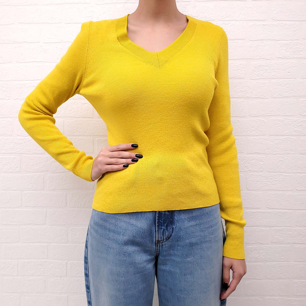 DRIES VAN NOTEN YELLOW V-NECK SWEATER - SIZE M