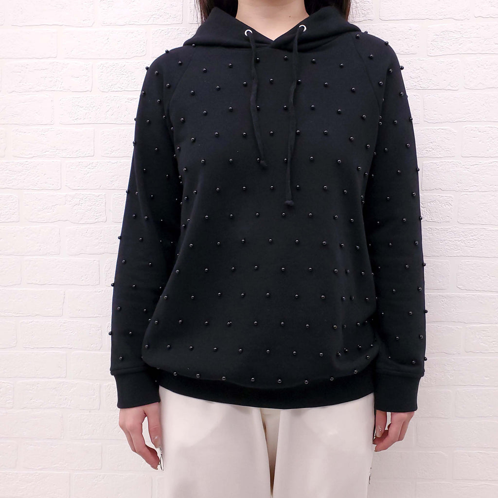 GIAMBA BLACK SWEATSHIRT WITH BLACK PEARLS - SIZE XXS