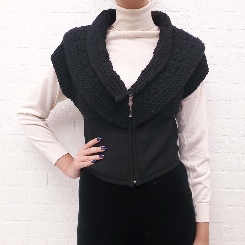 GIAMBATTISTA VALLI BLACK KNIT SWEATER WITH LACE AND RUFFLE DETAIL - SIZE 46