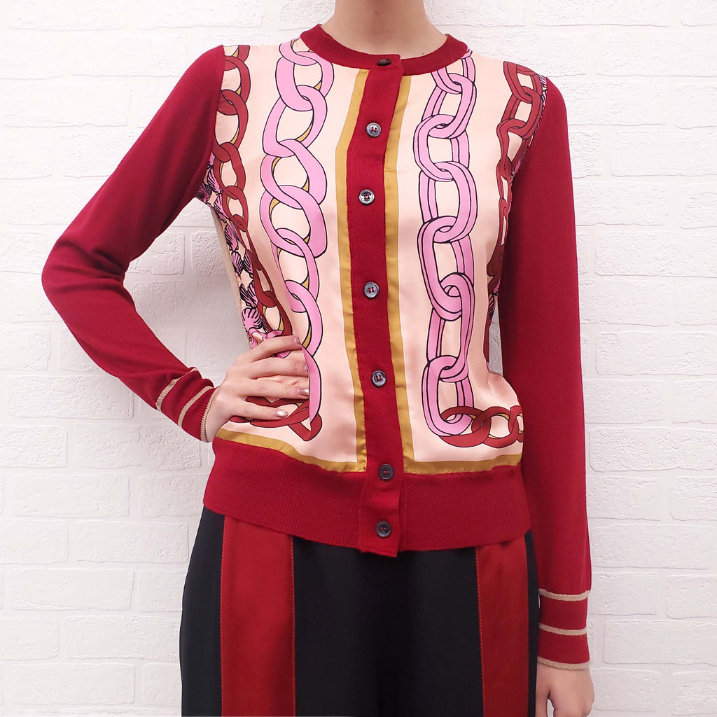 MARNI PINK AND RED SILK AND WOOL CHAIN PRINT CARDIGAN - SIZE 40
