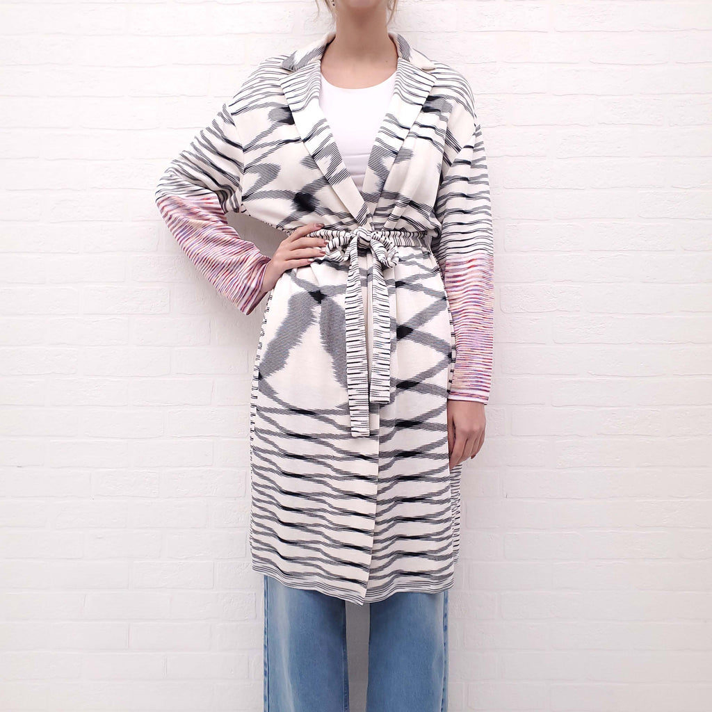 MISSONI CREAM AND BLACK PATTERNED SWEATER JACKET WITH BELT - SIZE 42