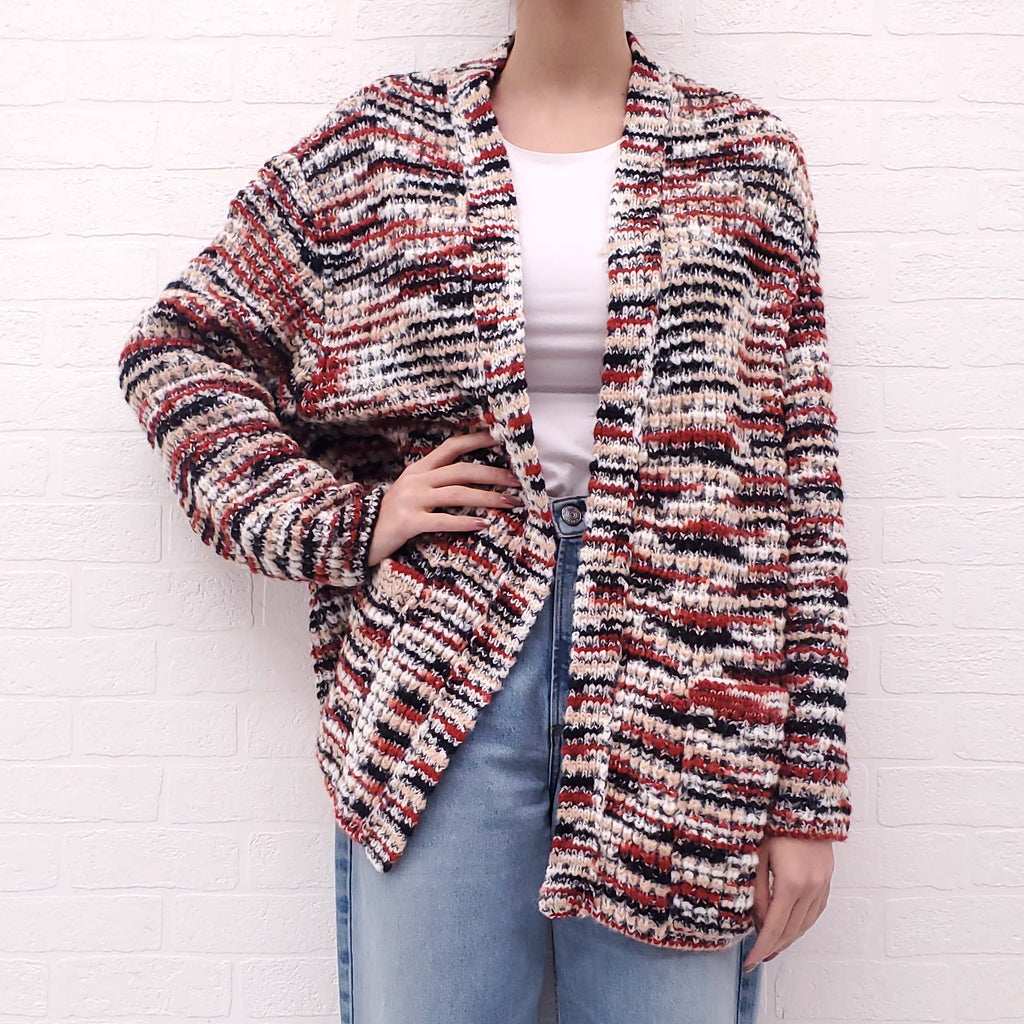 MISSONI CREAM, RED AND BLACK CHUNKY KNIT CARDIGAN - SIZE S