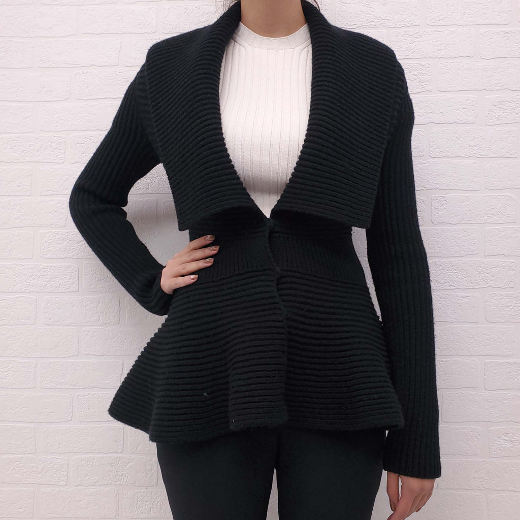 ALEXANDER MCQUEEN BLACK THICK KNIT CARDIGAN WITH PEPLUM - SIZE S