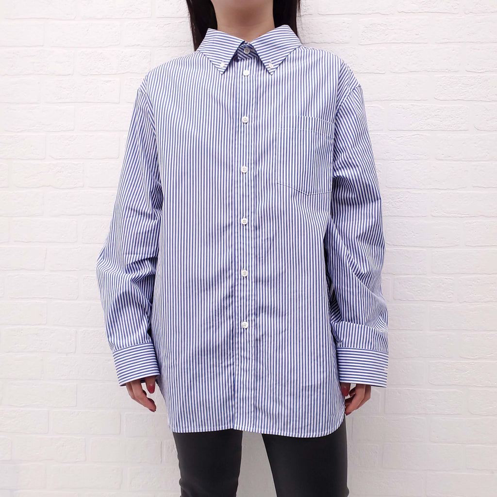 BALENCIAGA OVERSIZED BLUE AND WHITE STRIPED BUTTON UP SHIRT - SIZE 32