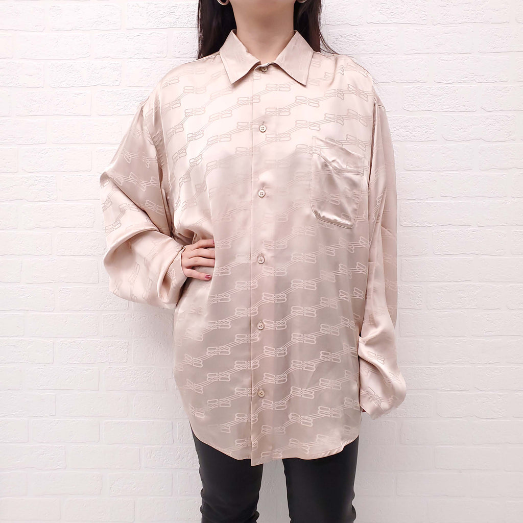 BALENCIAGA OVERSIZED CHAMPAGNE LOGO BLOUSE - SIZE 34