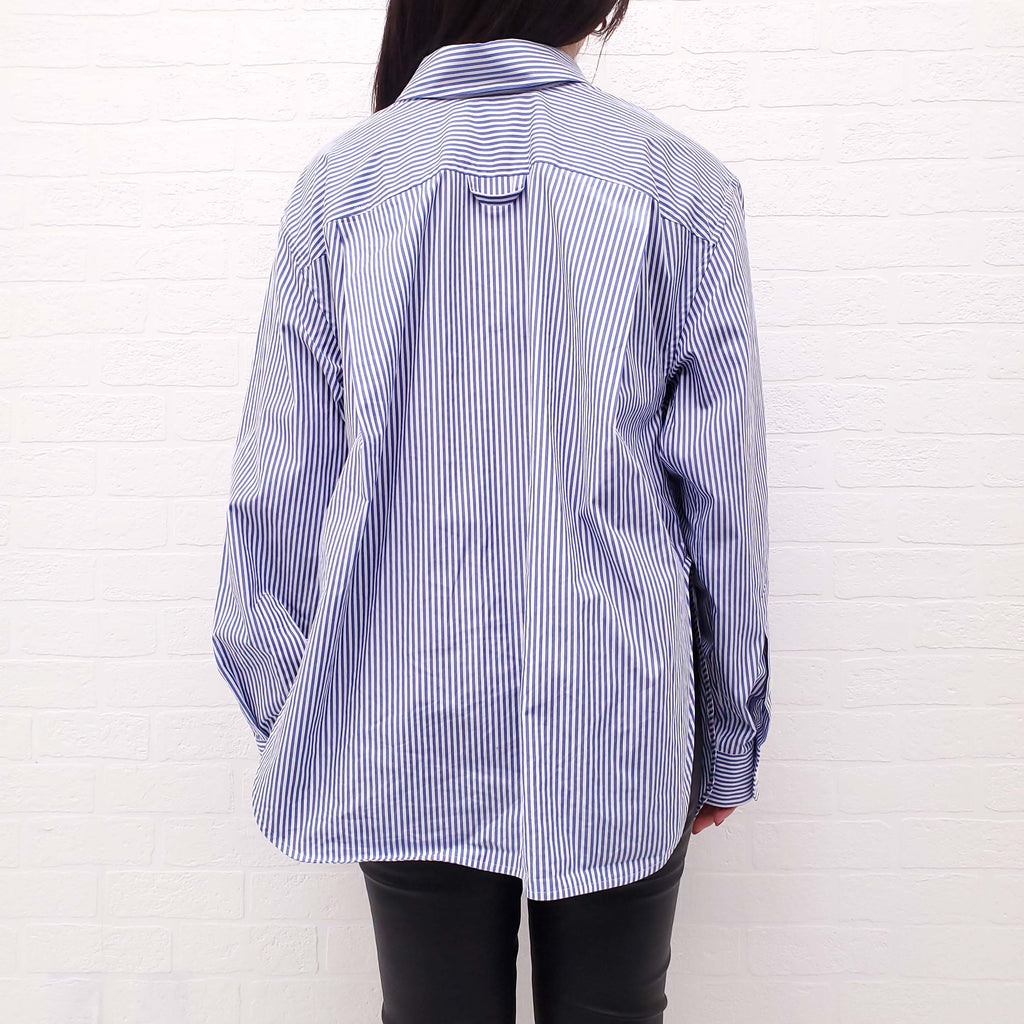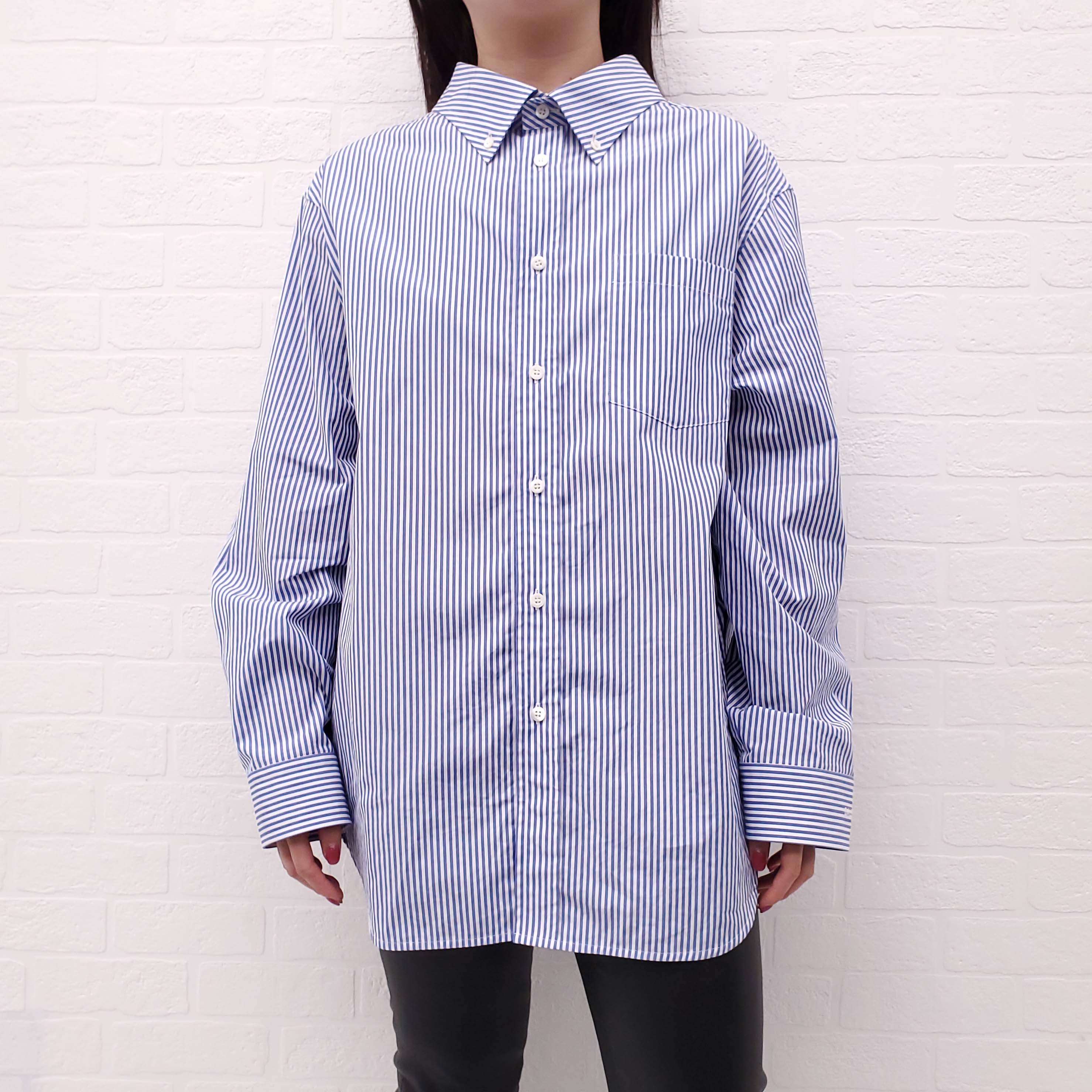 BALENCIAGA OVERSIZED BLUE AND WHITE STRIPED BUTTON UP SHIRT - SIZE 32