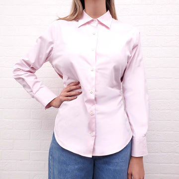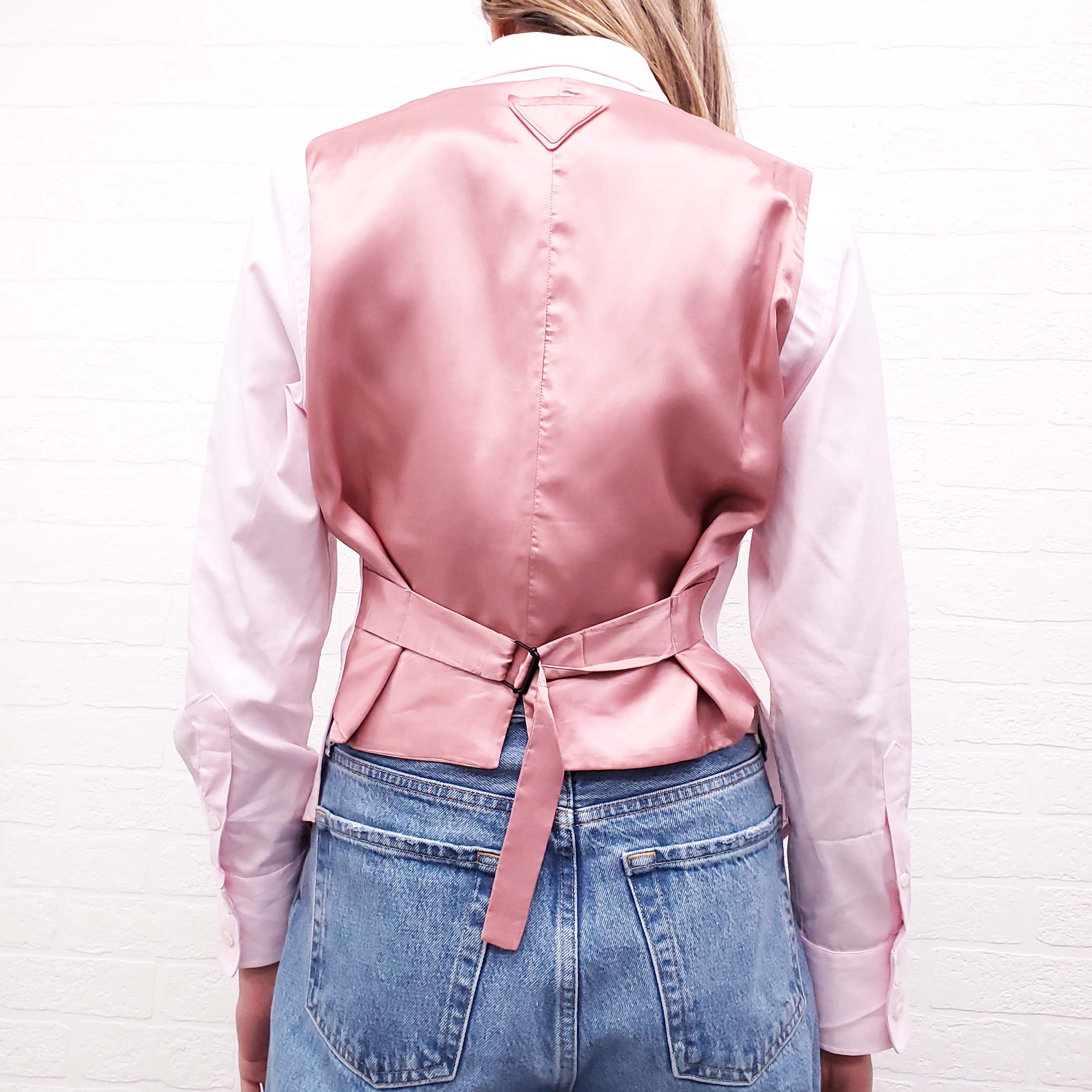 PRADA PINK BUTTON UP BLOUSE WITH SILK TUXEDO BACK AND TRIANGLE LOGO - SIZE 38