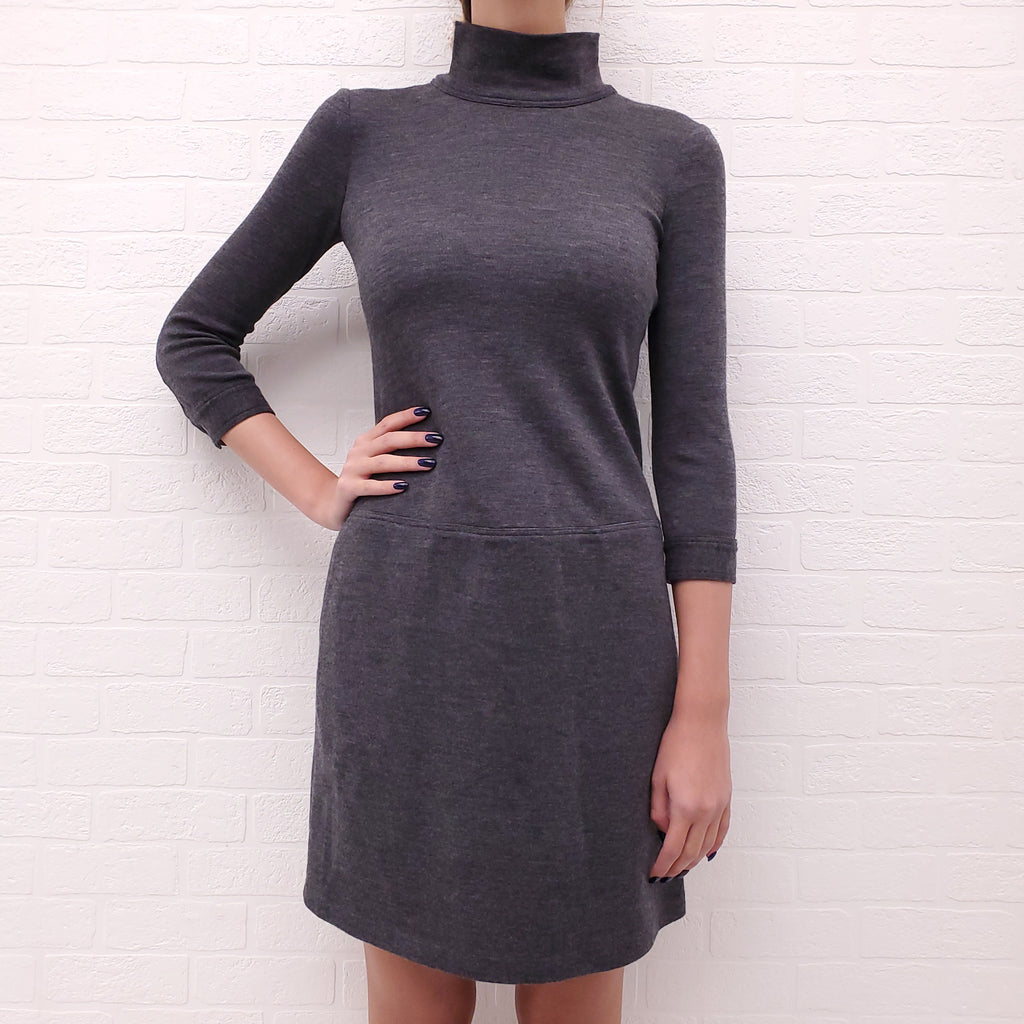 BURBERRY BRIT GREY DRESS WITH CHECK DETAIL ON SLEEVE - SIZE 2
