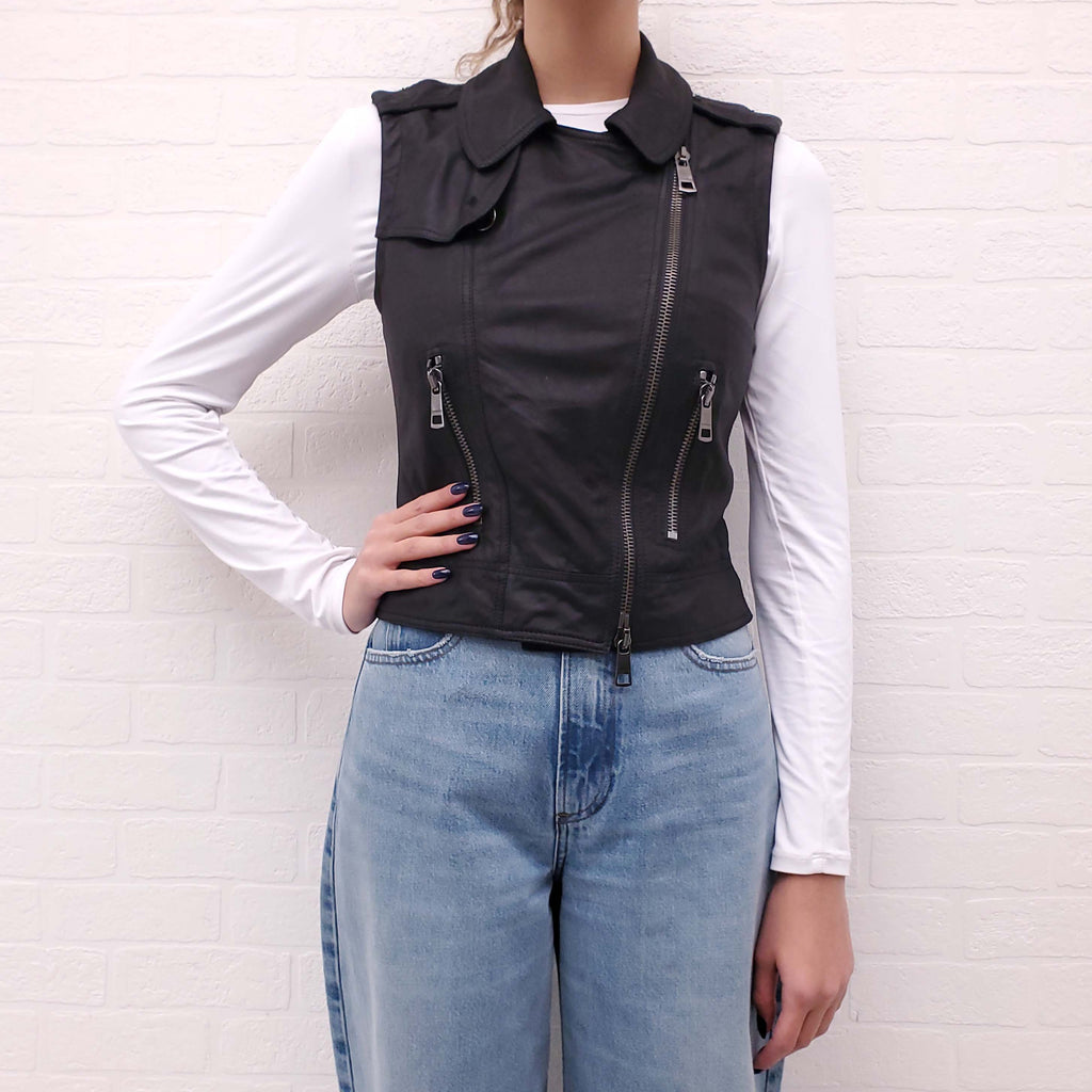BURBERRY BRIT LEATHER VEST WITH CHECK LINING - SIZE 2