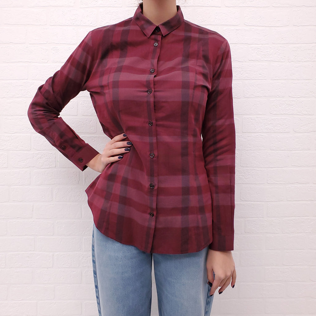 BURBERRY BURGUNDY CHECK BLOUSE - SIZE 8