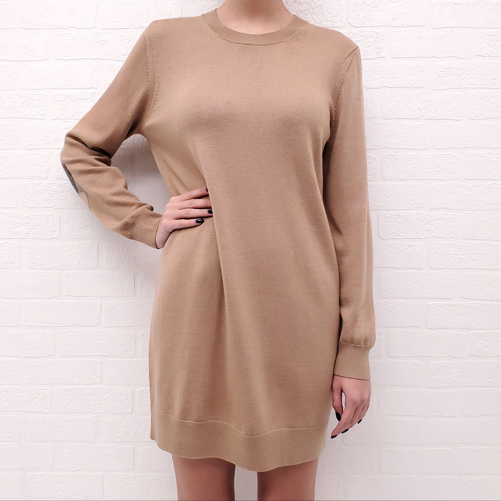 BURBERRY CAMEL SWEATER DRESS WITH CHECK ELBOW PATCHES - SIZE M