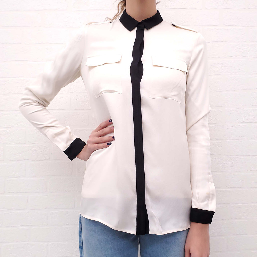 BURBERRY CREAM BLOUSE WITH BLACK PIPING - SIZE 4