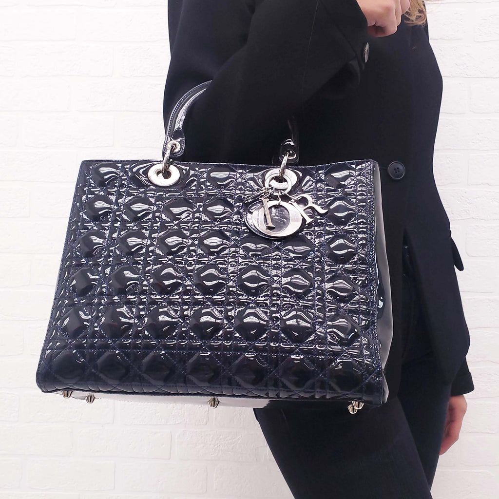 CHRISTIAN DIOR LADY DIOR CANNAGE NAVY PATENT