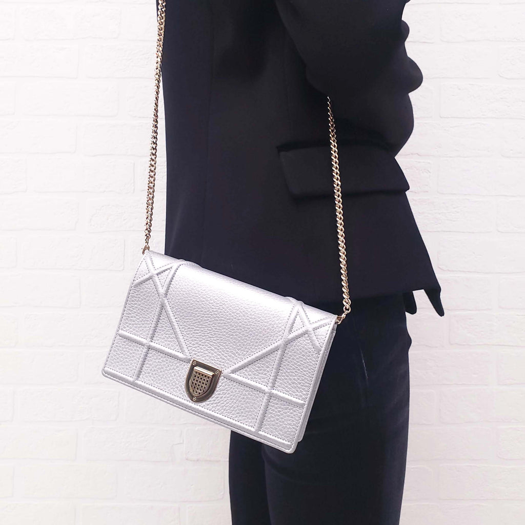 CHRISTIAN DIOR SILVER WALLET ON CHAIN
