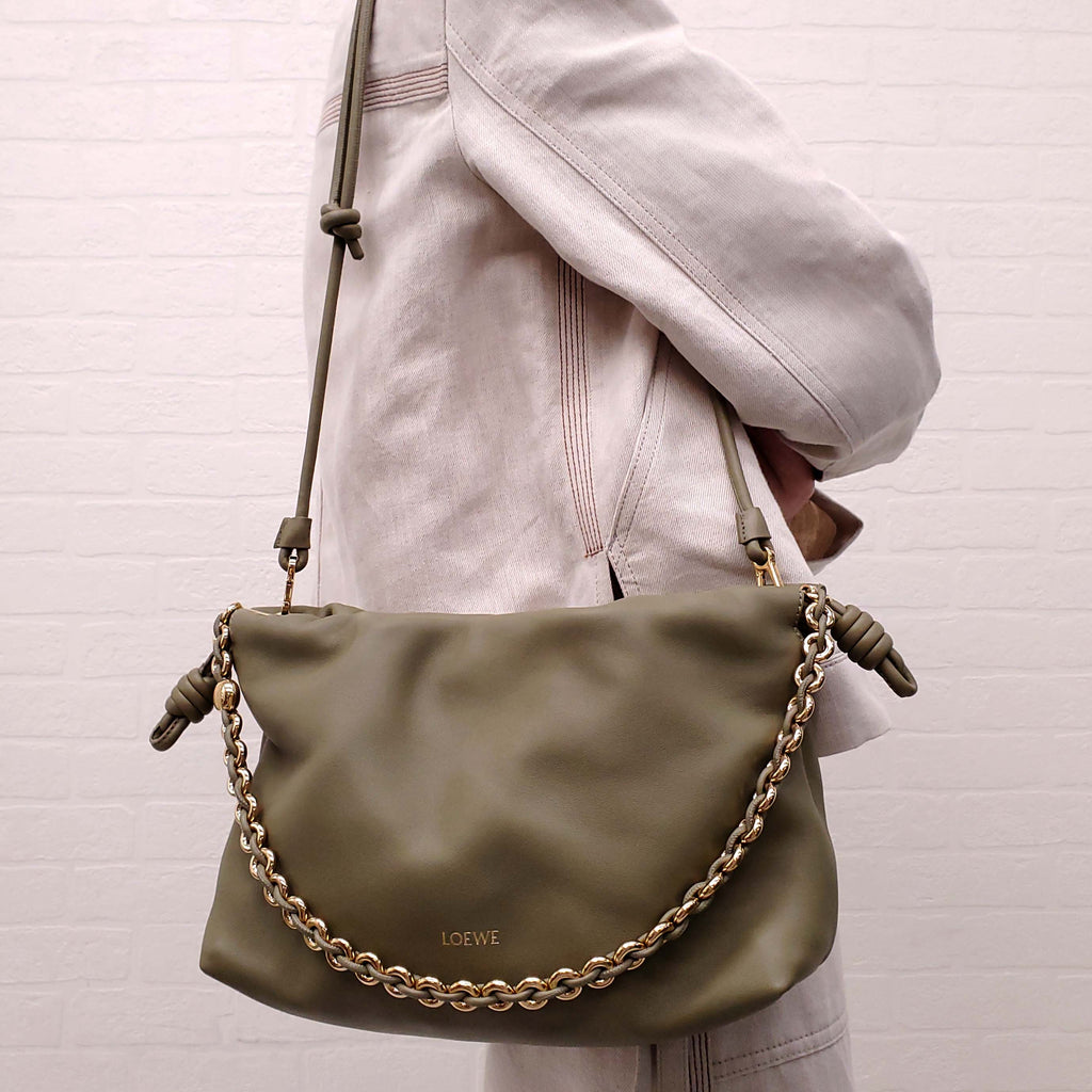 LOEWE SAGE GREEN LEATHER MEDIUM FLAMENCO PURSE