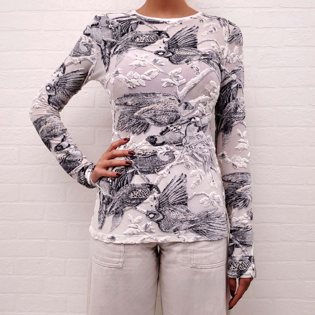 LOEWE WHITE AND GREY VELVET PATTERNED LONG SLEEVE SHIRT - SIZE M