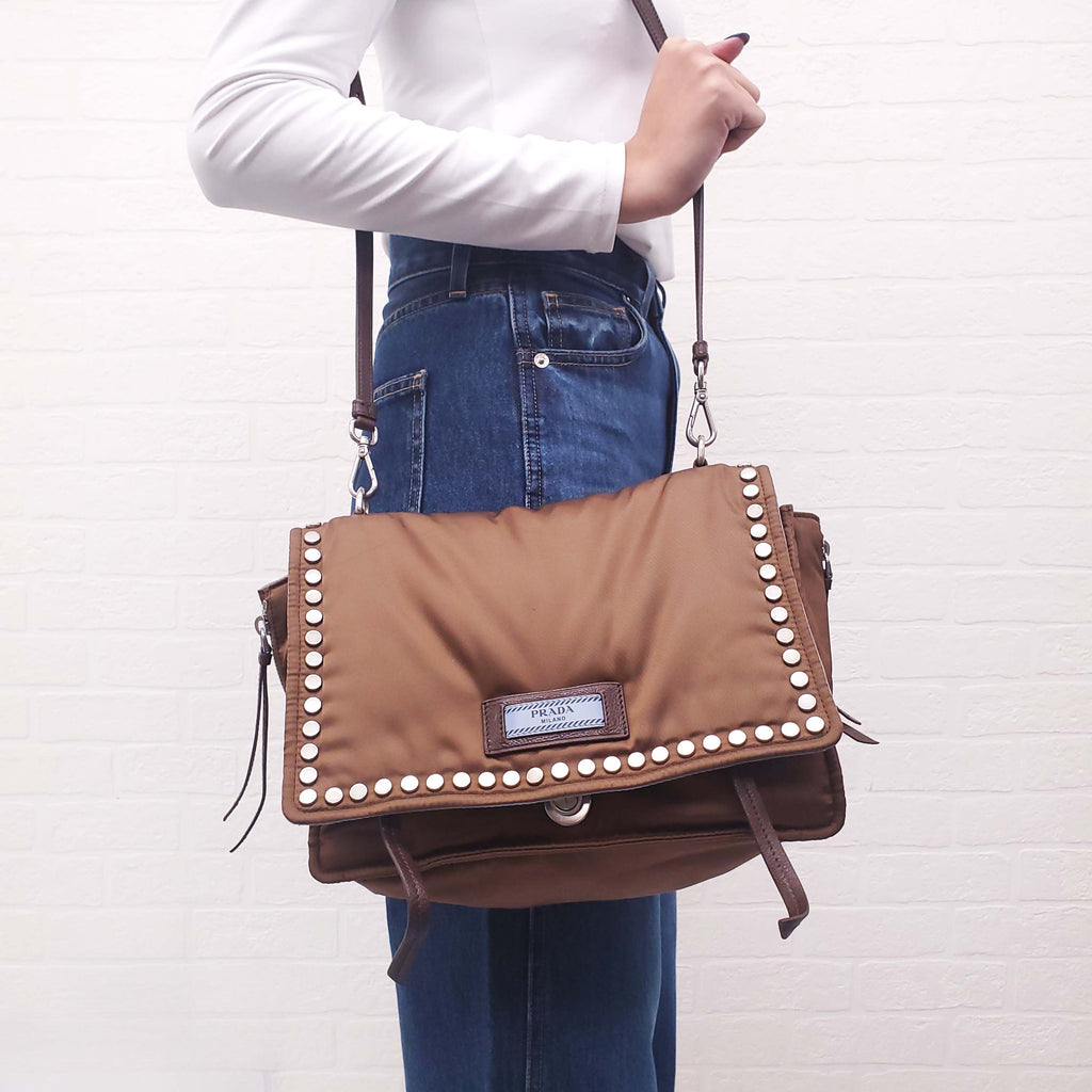 PRADA BROWN NYLON STUDDED CROSSBODY BAG