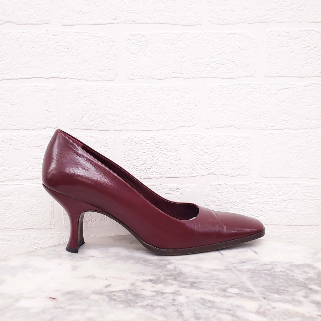 PRADA BURGUNDY LEATHER HEELS - SIZE 37.5