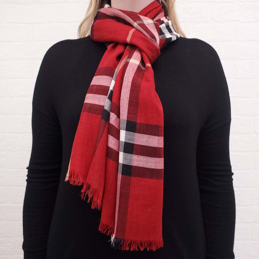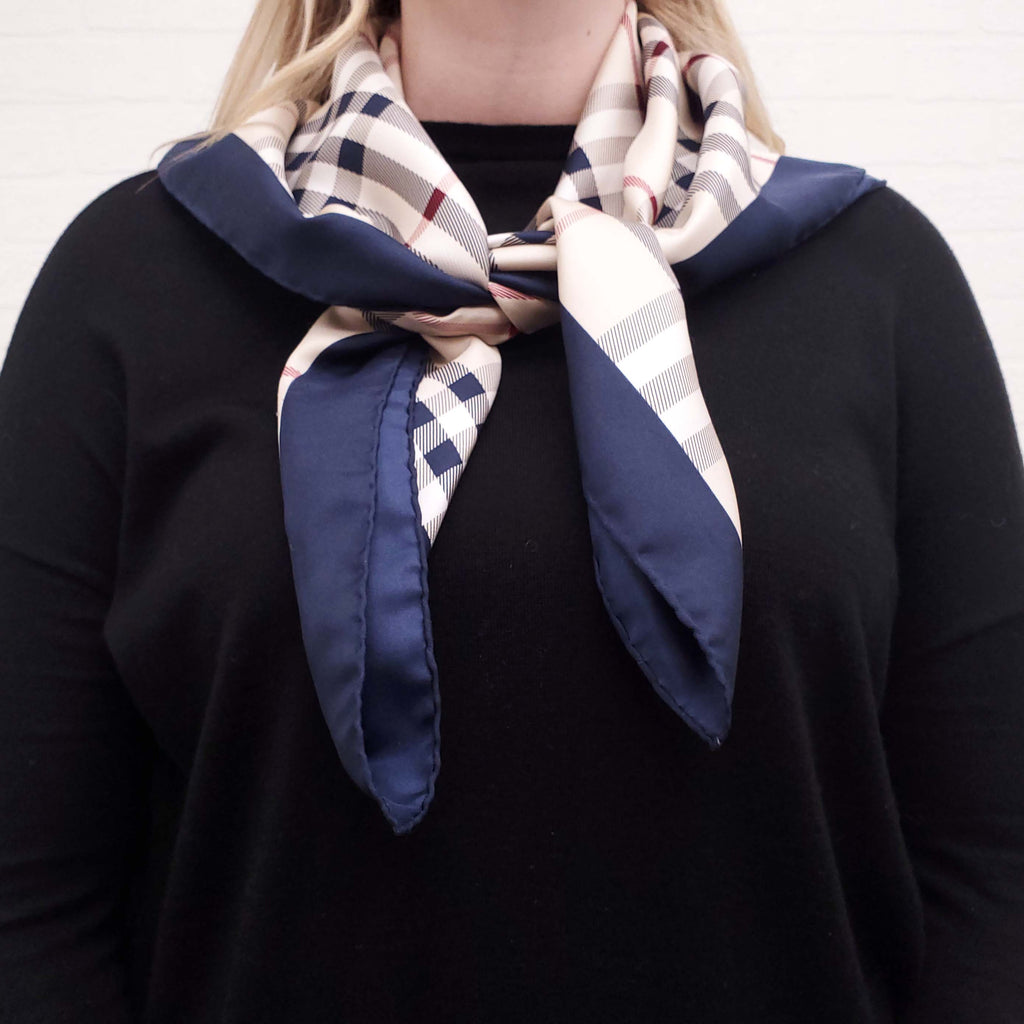 BURBERRY SILK CHECK SCARF WITH NAVY BORDER