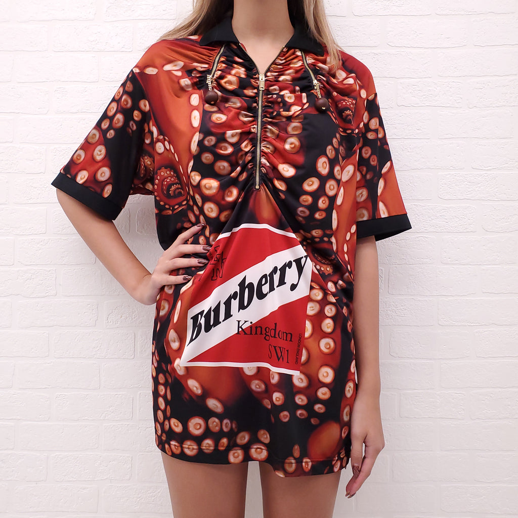 BURBERRY RED PRINTED POLO DRESS WITH WOODEN BEADS - SIZE M
