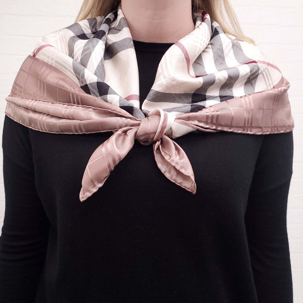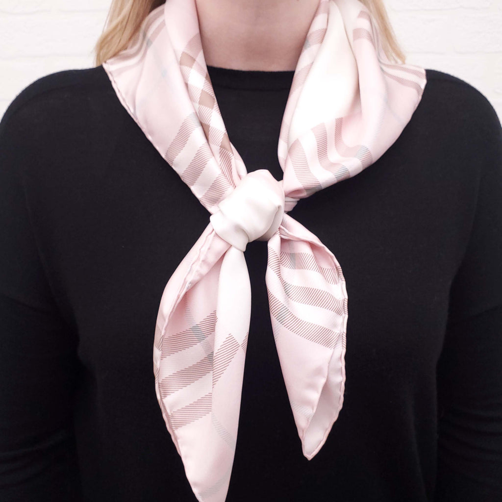 BURBERRY SILK CHECK SCARF WITH BLUSH PINK BORDER