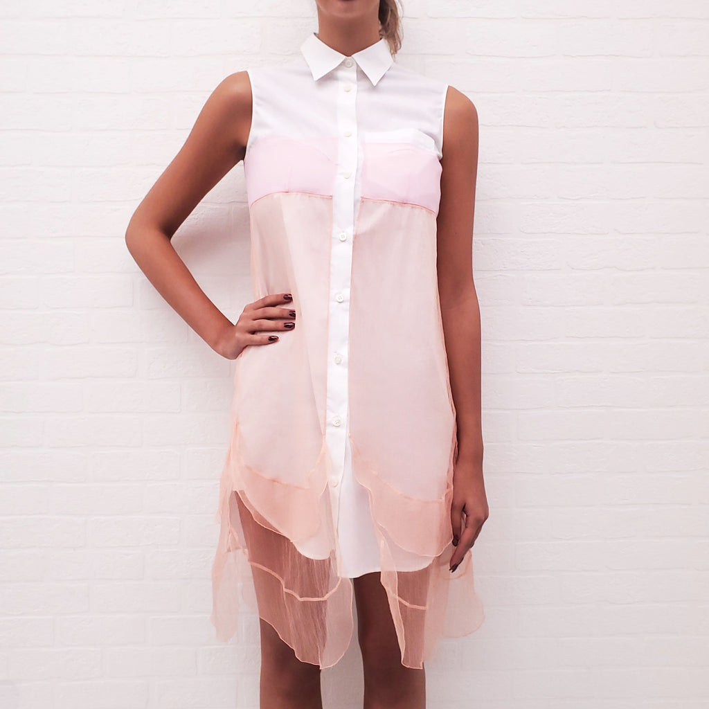 PRADA WHITE BUTTON UP TULLE LAYERED DRESS - SIZE 4