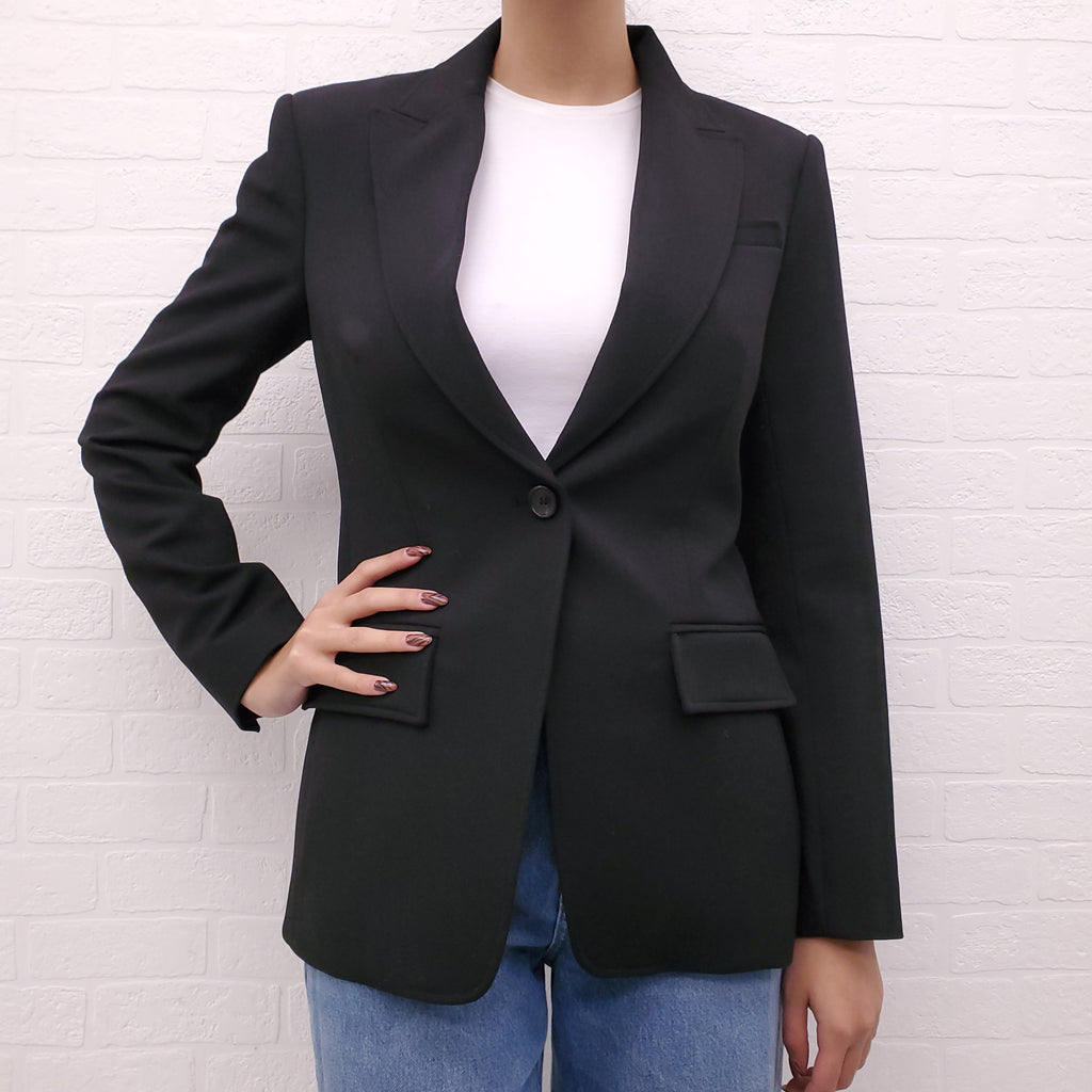 A.L.C. BLACK TROUSERS WITH LEATHER WAIST BAND DETAIL - SIZE 4
