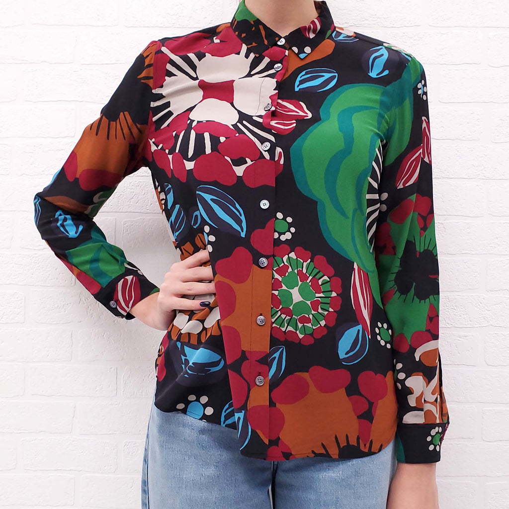 BURBERRY BLACK FLORAL BLOUSE - SIZE 6