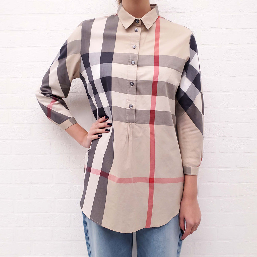 BURBERRY BRIT CHECK A-LINE BLOUSE - SIZE L