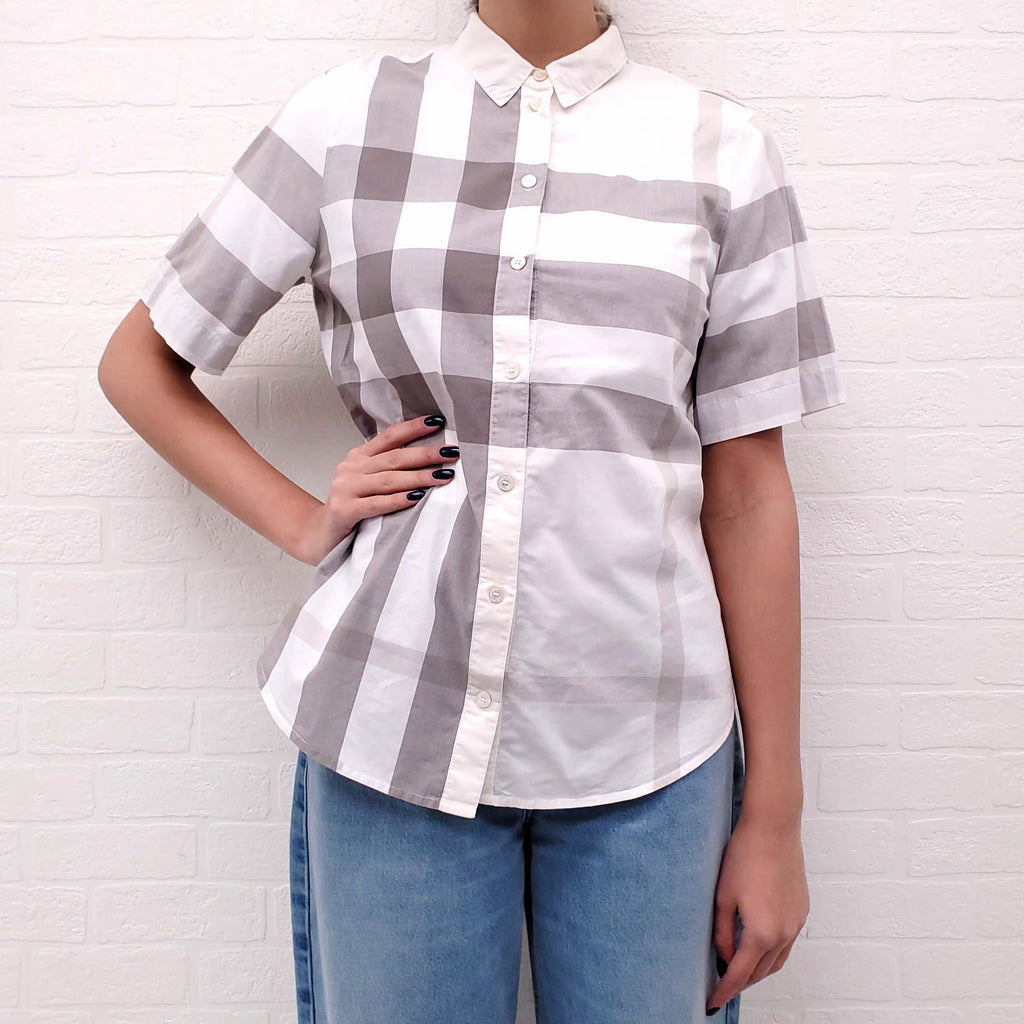 BURBERRY BRIT CHECK SHORT SLEEVE BLOUSE - SIZE M