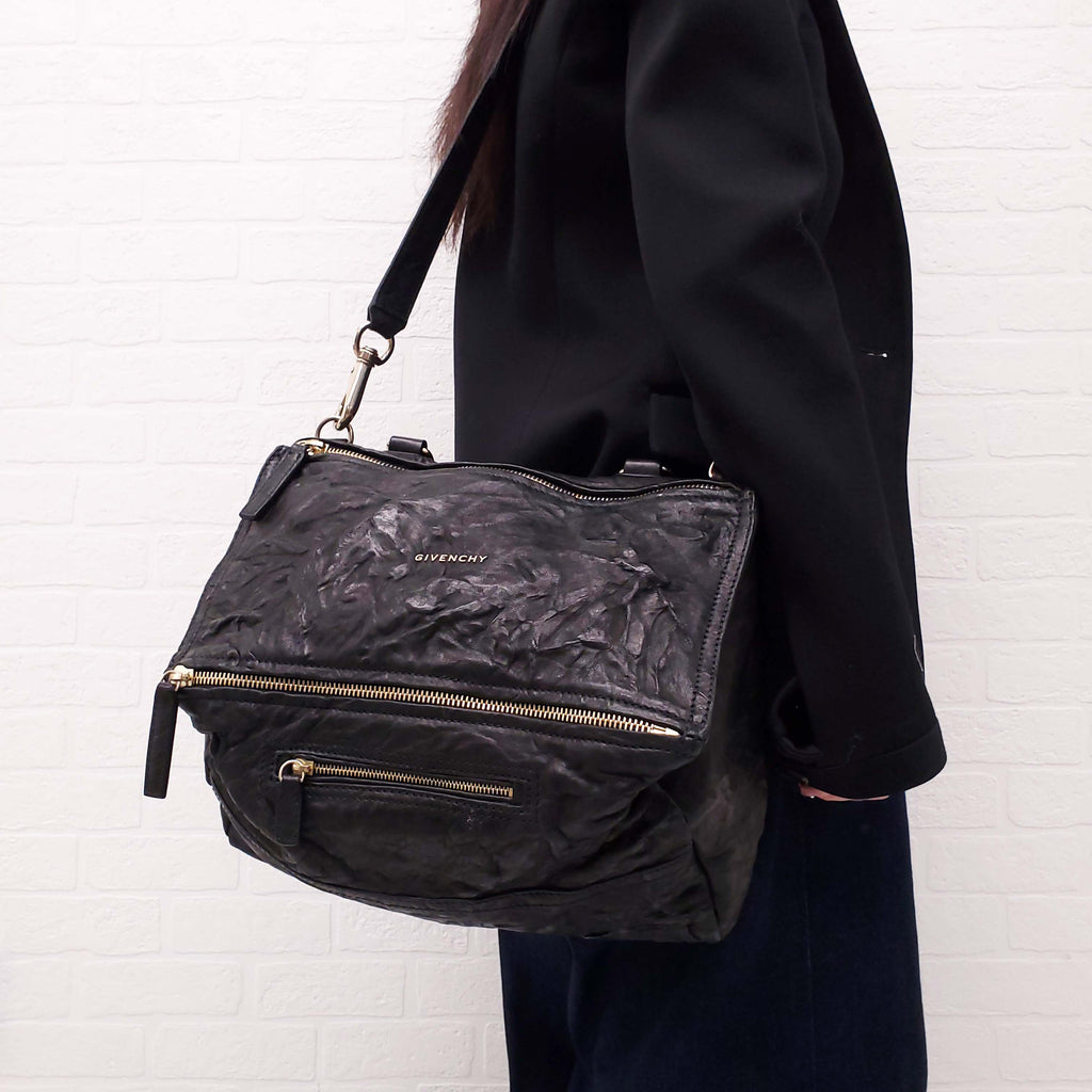 GIVENCHY BLACK CRUSHED LEATHER PANDORA BAG