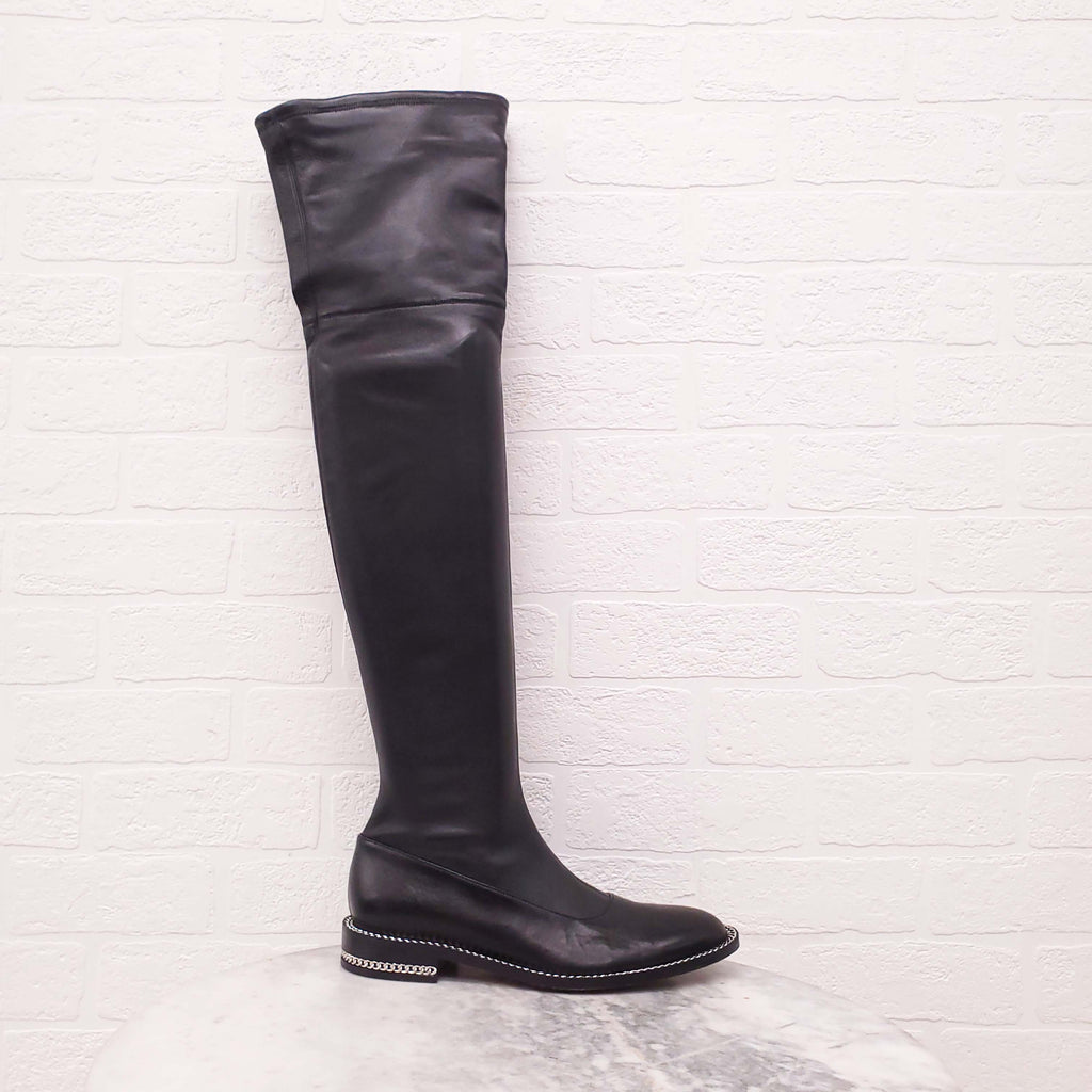 GIVENCHY BLACK LEATHER OVER THE KNEE BOOTS WITH CHAIN DETAIL - SIZE 37