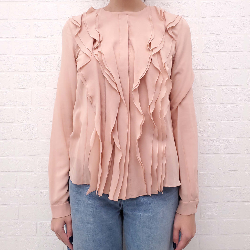 LANVIN BLUSH PINK SILK RUFFLE BLOUSE - SIZE 38