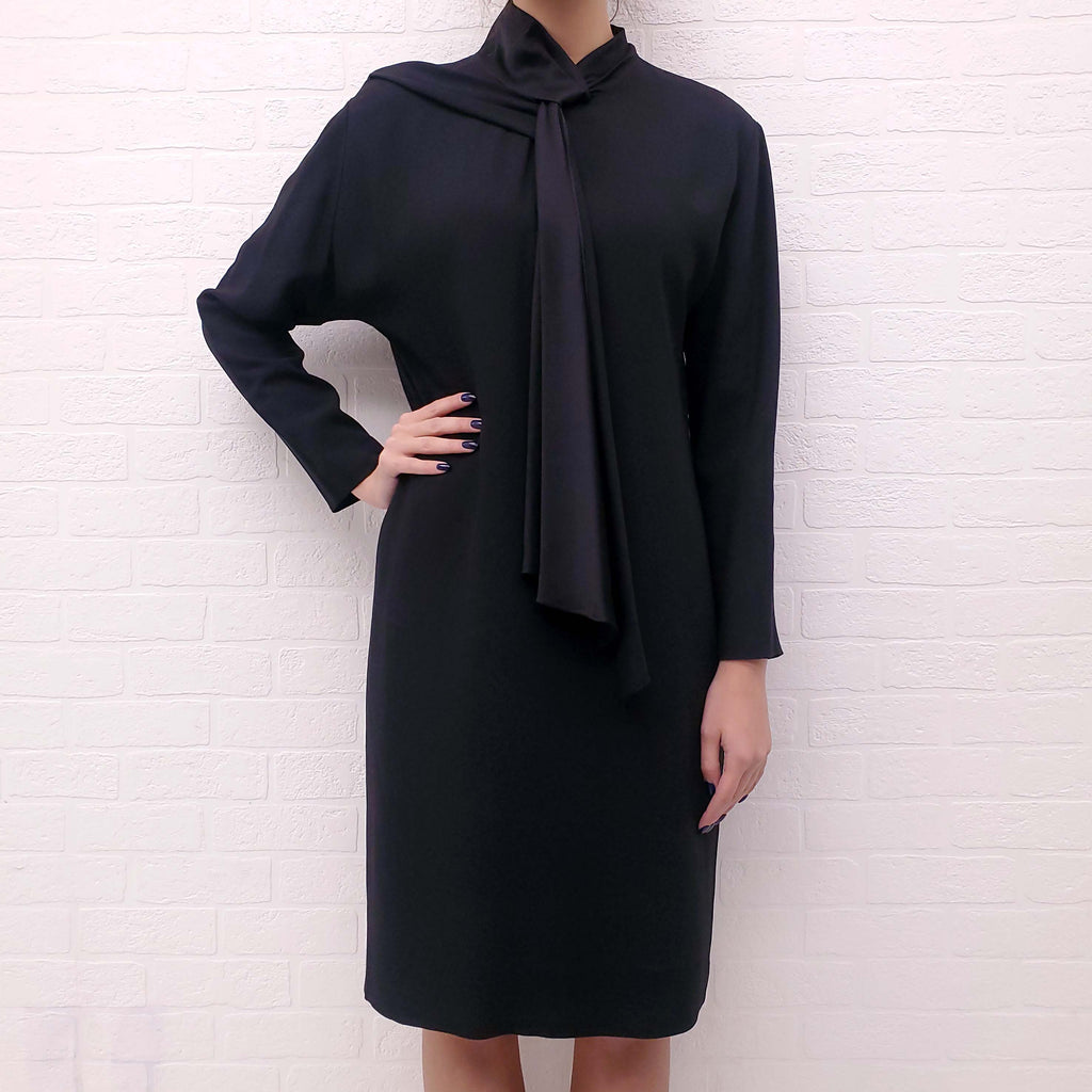 LANVIN BLACK FITTED DRESS WITH VELVET DETAIL - SIZE 36