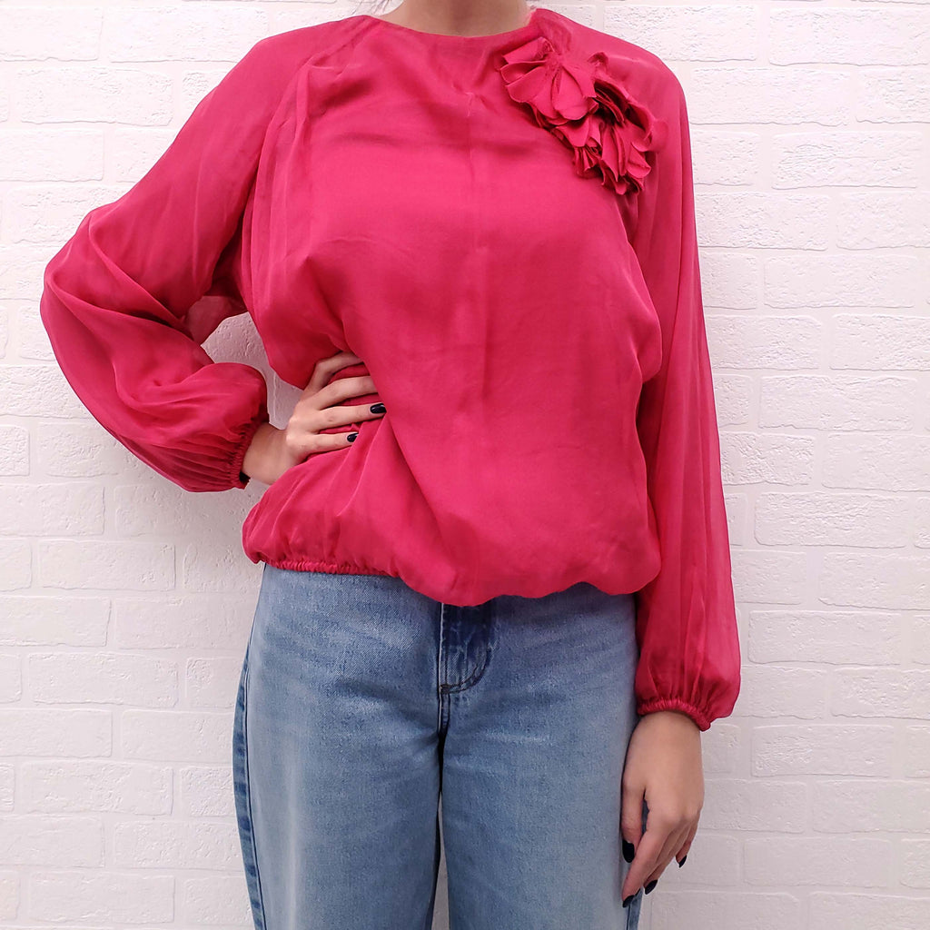 LANVIN PINK SILK BLOUSE WITH FLORAL DETAIL - SIZE M